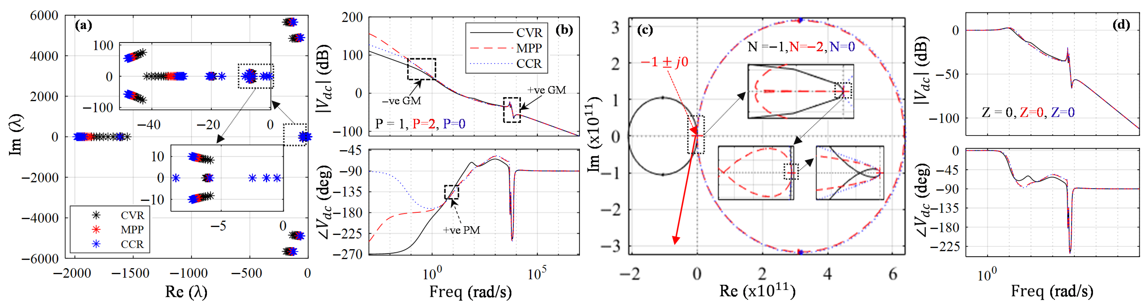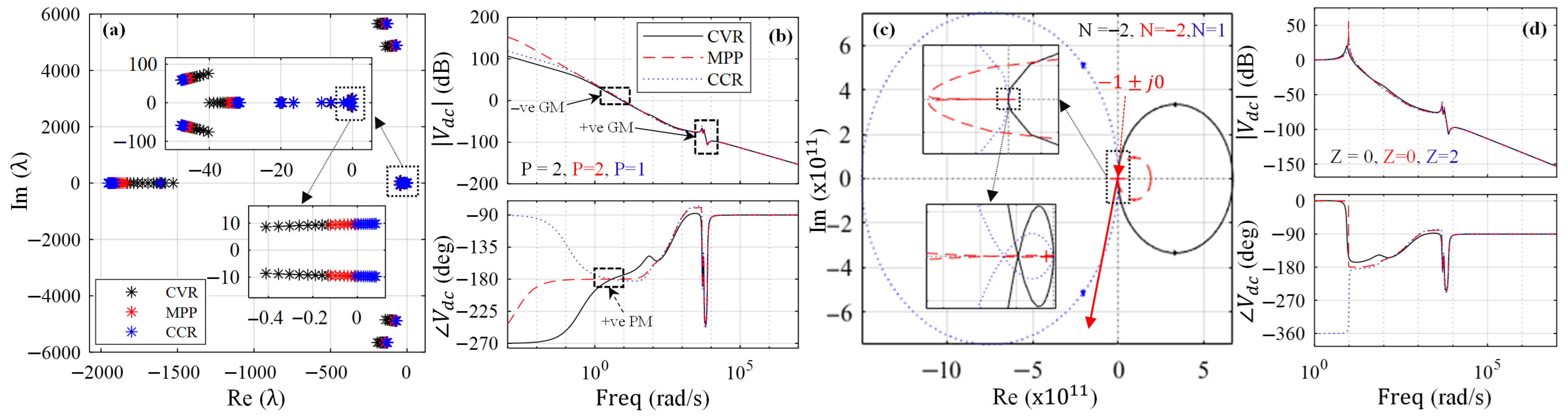 Figure 17b shows open-loop frequency response RHP poles with P = 2, P = 2, and P = 1 for CVR, MPP, and CCR regions, respectively.