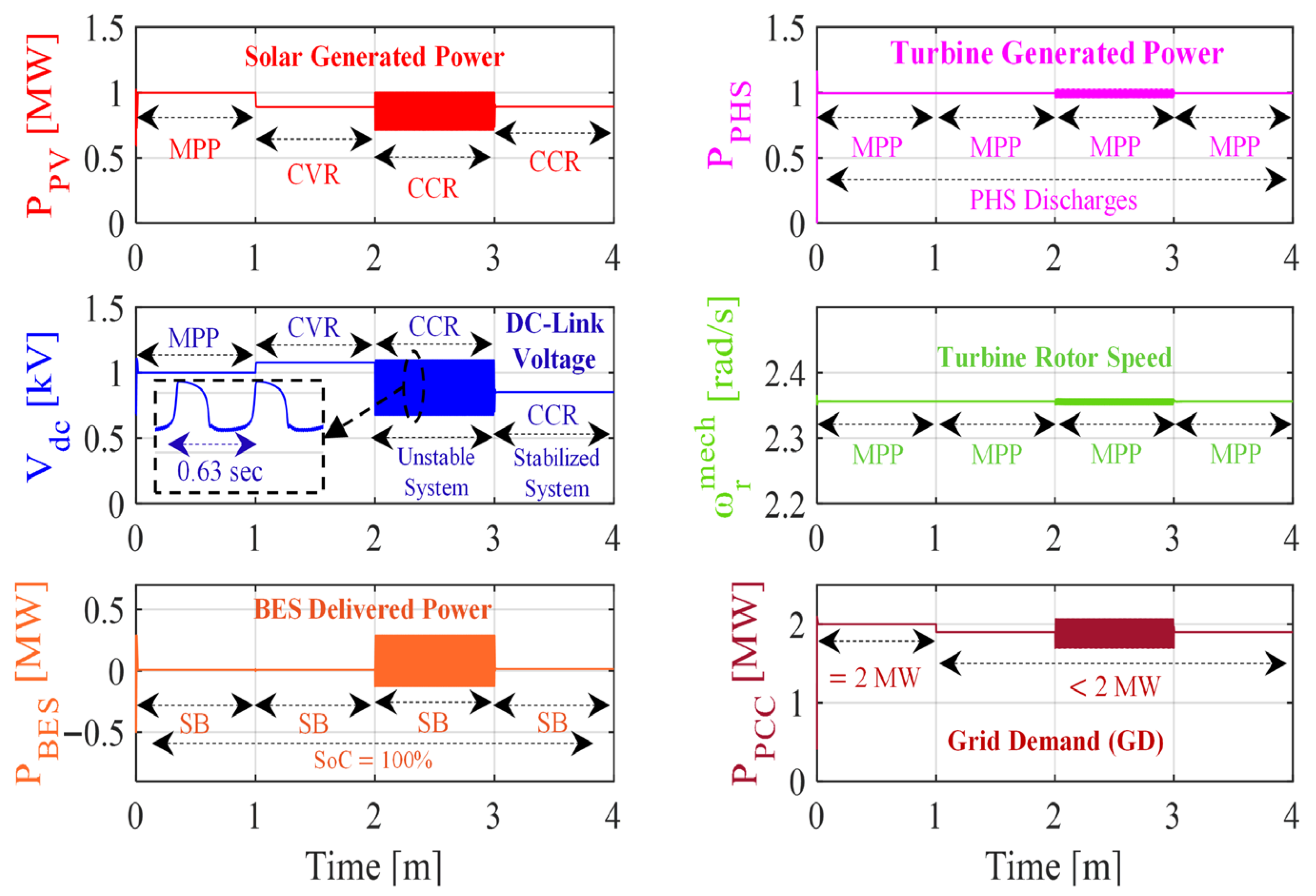 Figure 21) does not compromise system stability. However, when the PV operates in CCR mode from 2 to 3 min in
