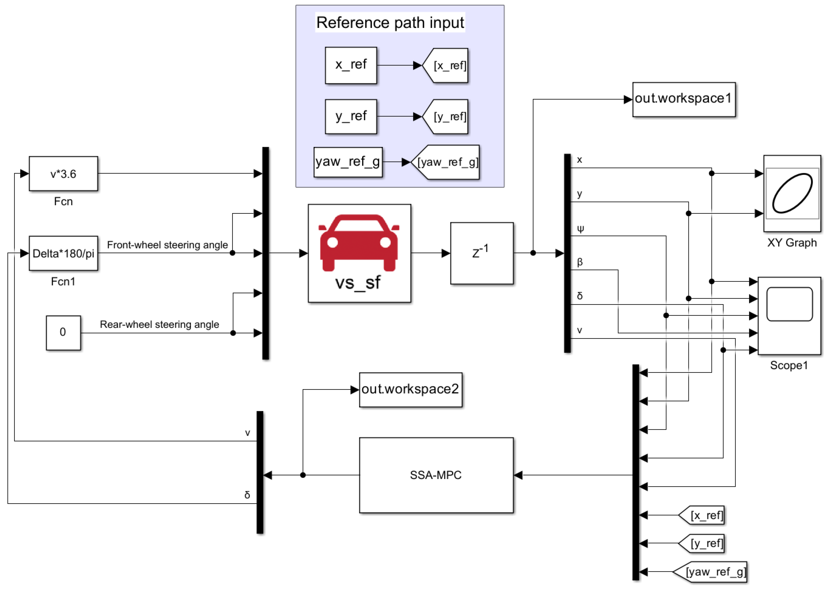 Table 3. The absolute heading error remains within 14.766° for SSA-MPC and 14.936° for MPC. The sideslip angle shown in