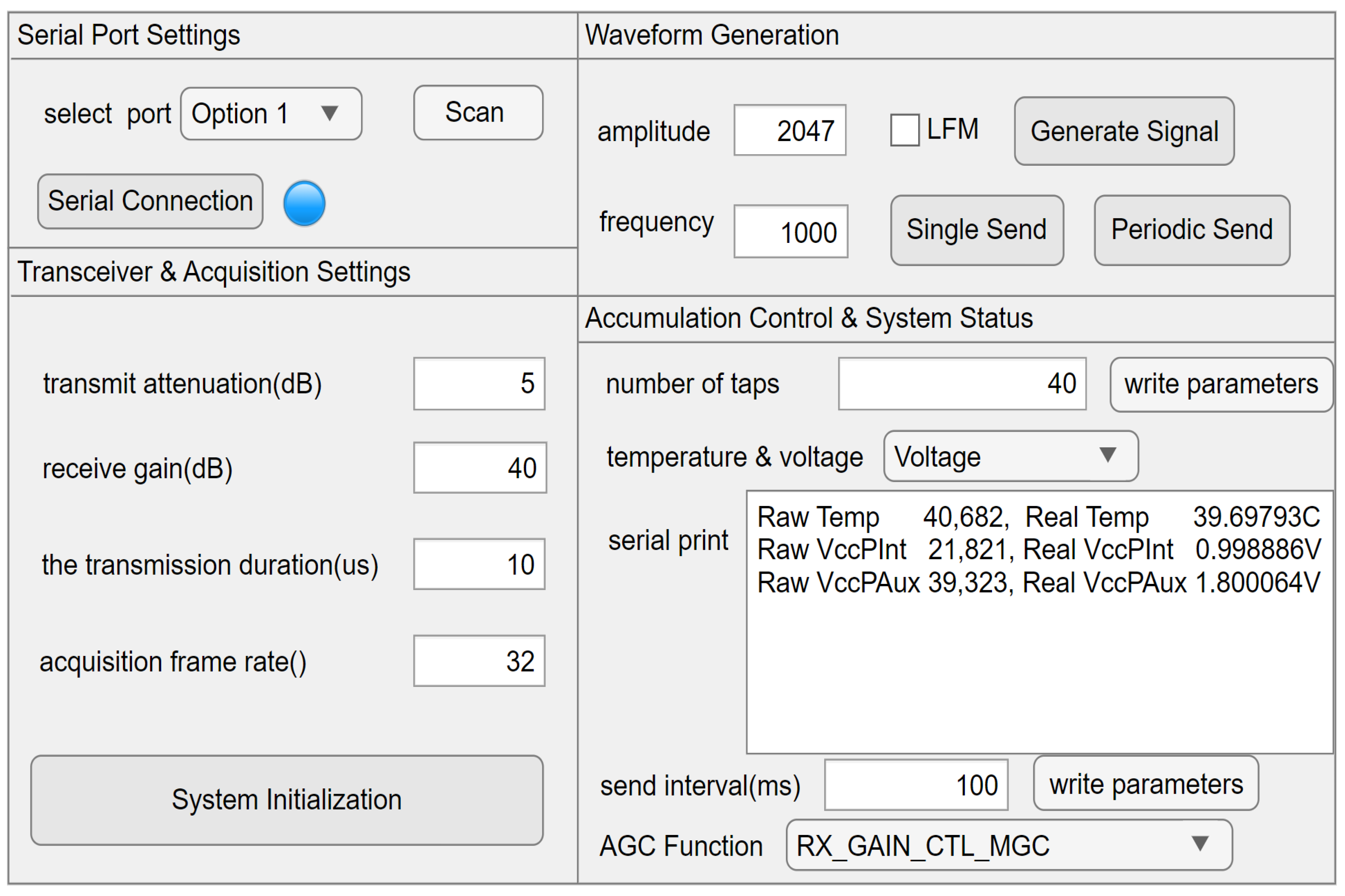 | Number of Pulses Coherent Integration/(pcs) | Number of Pulse Storage Frames/(pcs) | Initial Multi-Pulse Buffer Time/(ms) | Coherent Integration Data Output Delay/(µs) |