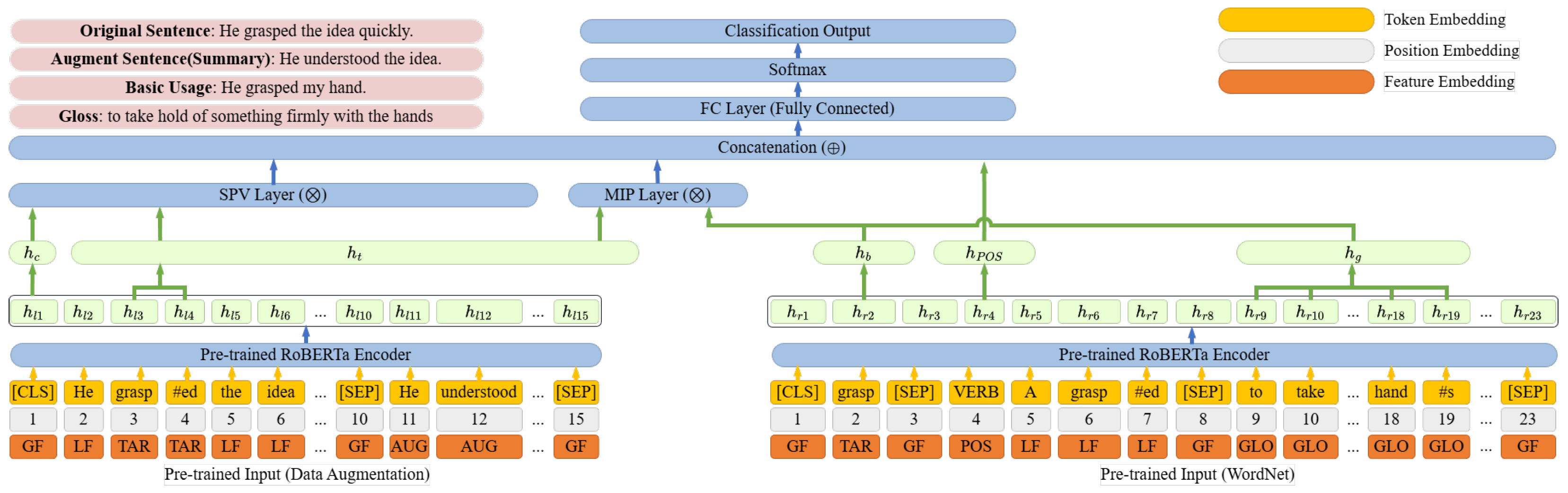 POS Feature: Represents the POS tag of the target word. This feature is exclusive to the right encoder input.