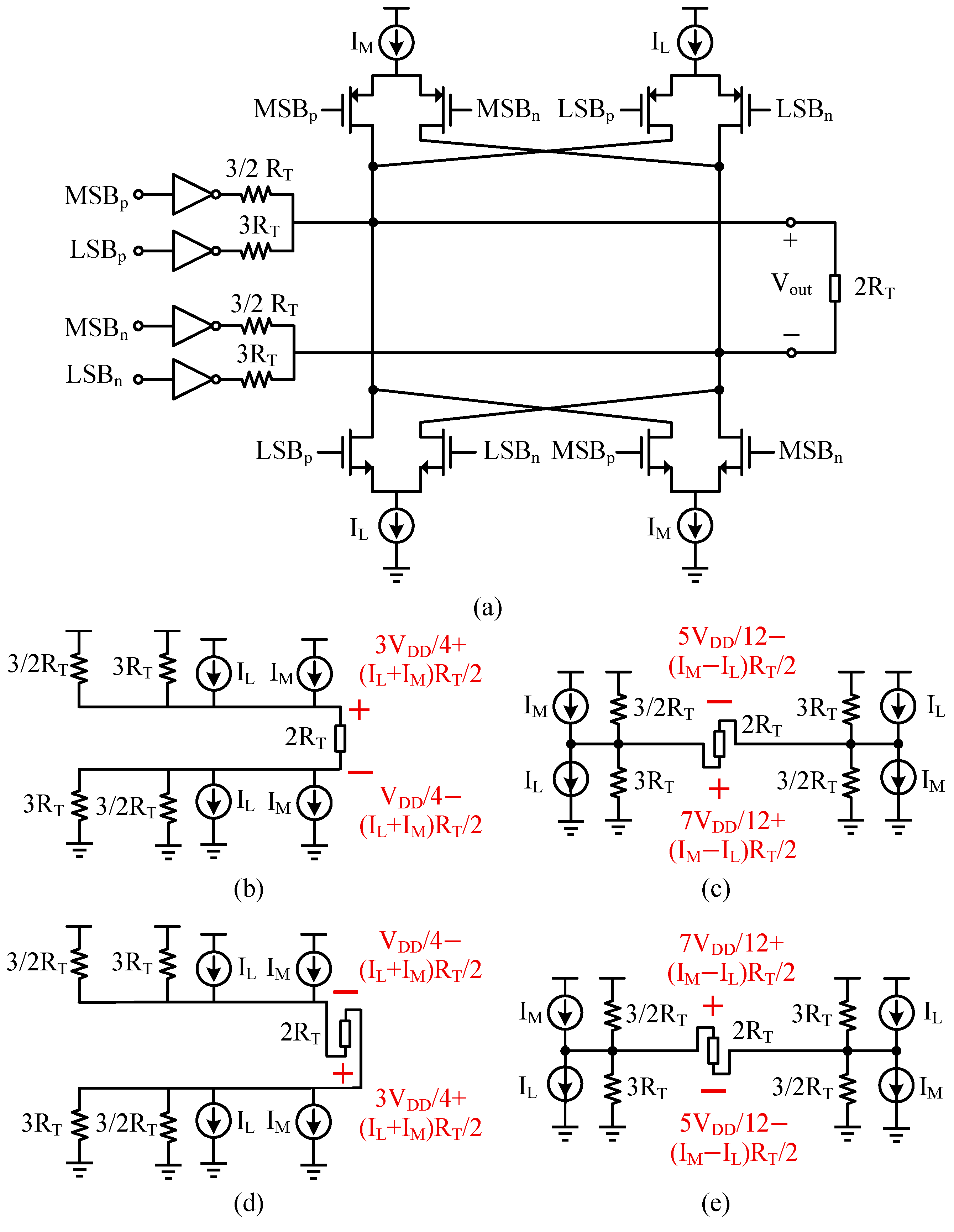 - Kuai, R.; Lv, F.; Xu, J.; Wang, Q.; Zhang, G.; Yuan, L.; Xin, K.; Huang, H.; Ding, H.; Lai, M. A 0.9 pJ/Bit 56Gb/s High-Swing Tri-Mode Wireline Transmitter with 6-Bit DAC Controlled Tailless-CML Driver and Impedance Calibration Loop. In Proceedings of the 2025 IEEE/MTT-S International Microwave Symposium—IMS 2025, San Francisco, CA, USA, 15–20 June 2025; pp. 753–756. [Google Scholar] [CrossRef]