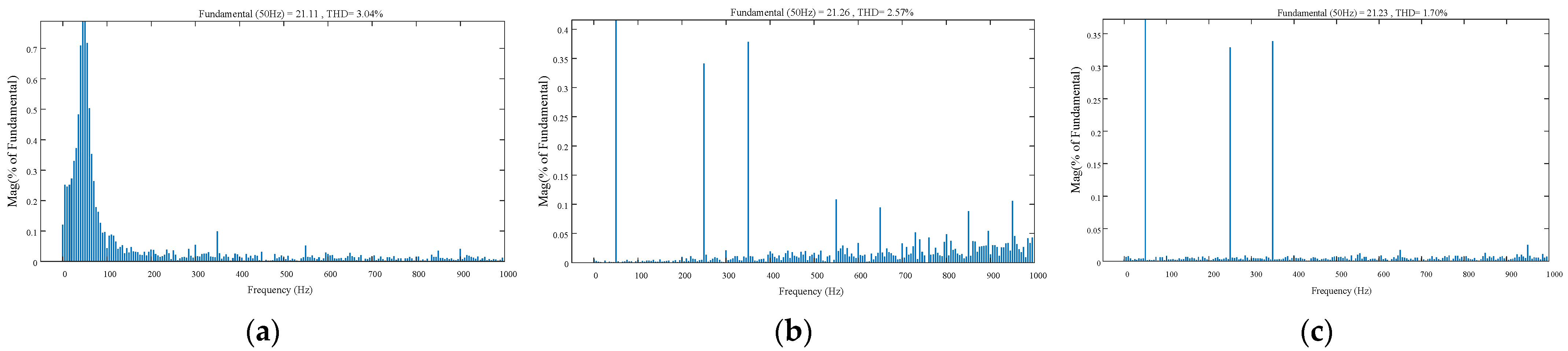 Figure 9 presents a comparison of the grid-side current harmonic factors under the three control strategies. The corresponding performance indices for the different control methods are summarized in
