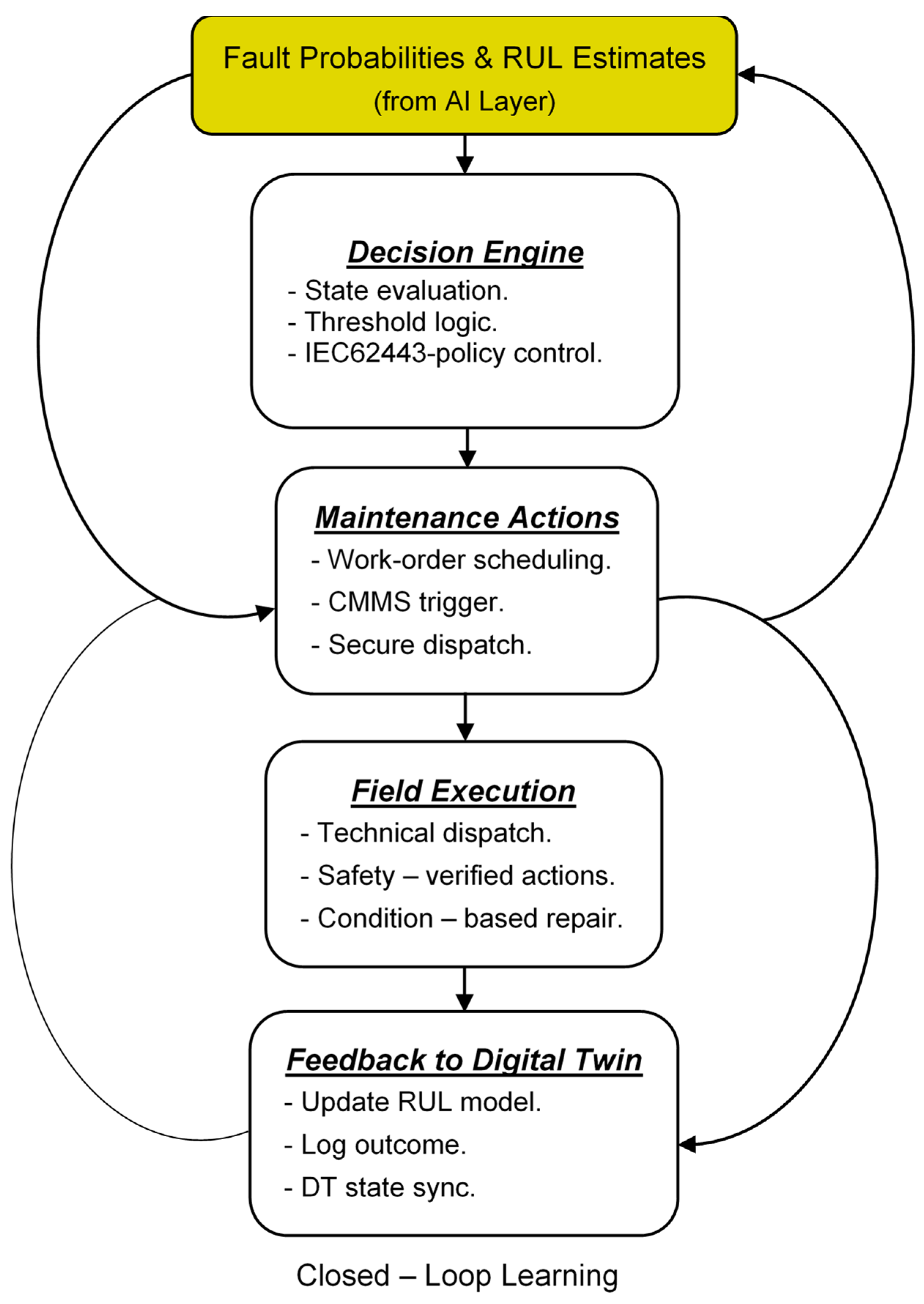 We provide an operation-oriented, human-in-the-loop decision layer linking predictive outputs to maintenance prioritization through composite scoring and cyber-trust-aware governance, supporting interpretable, auditable, and regulation-aligned maintenance actions.