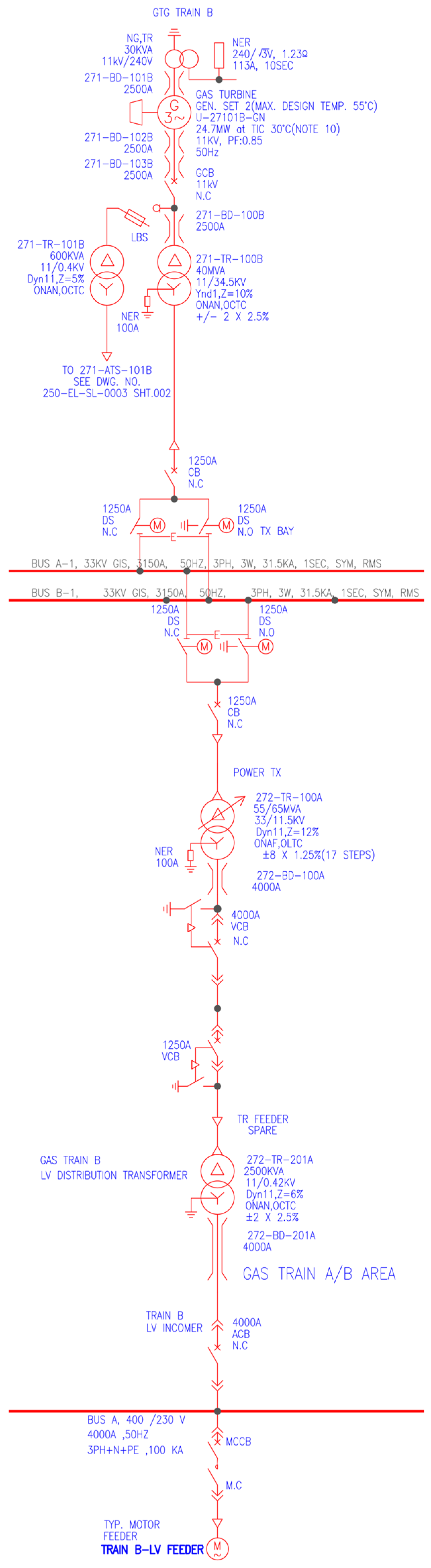 This substation supplies three on-duty substations, forming a critical node within the 120 MW Gas Turbine Power Plant (GTPP).