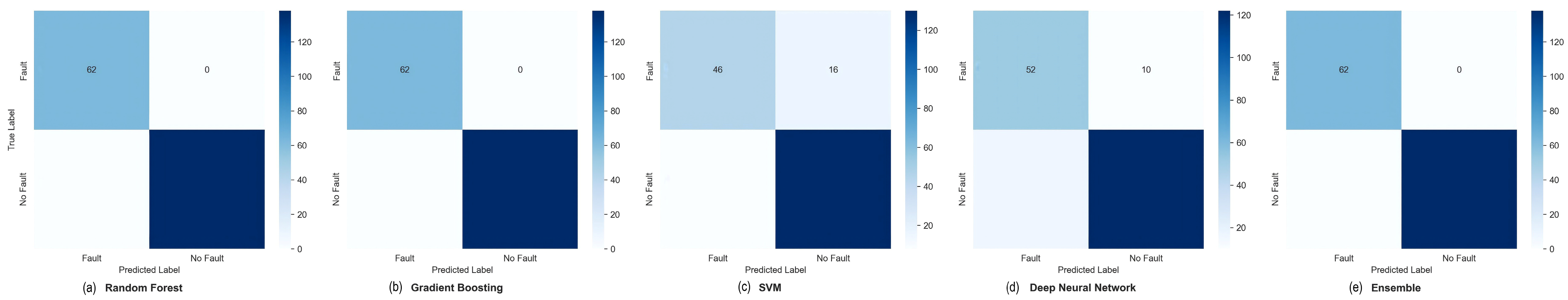 We benchmark RF, GBM, SVM, DNN, and a stacked ensemble and identify the best-performing operational model using the F1-score for imbalanced fault detection while explicitly accounting for inference feasibility within a 60 s supervisory monitoring loop.