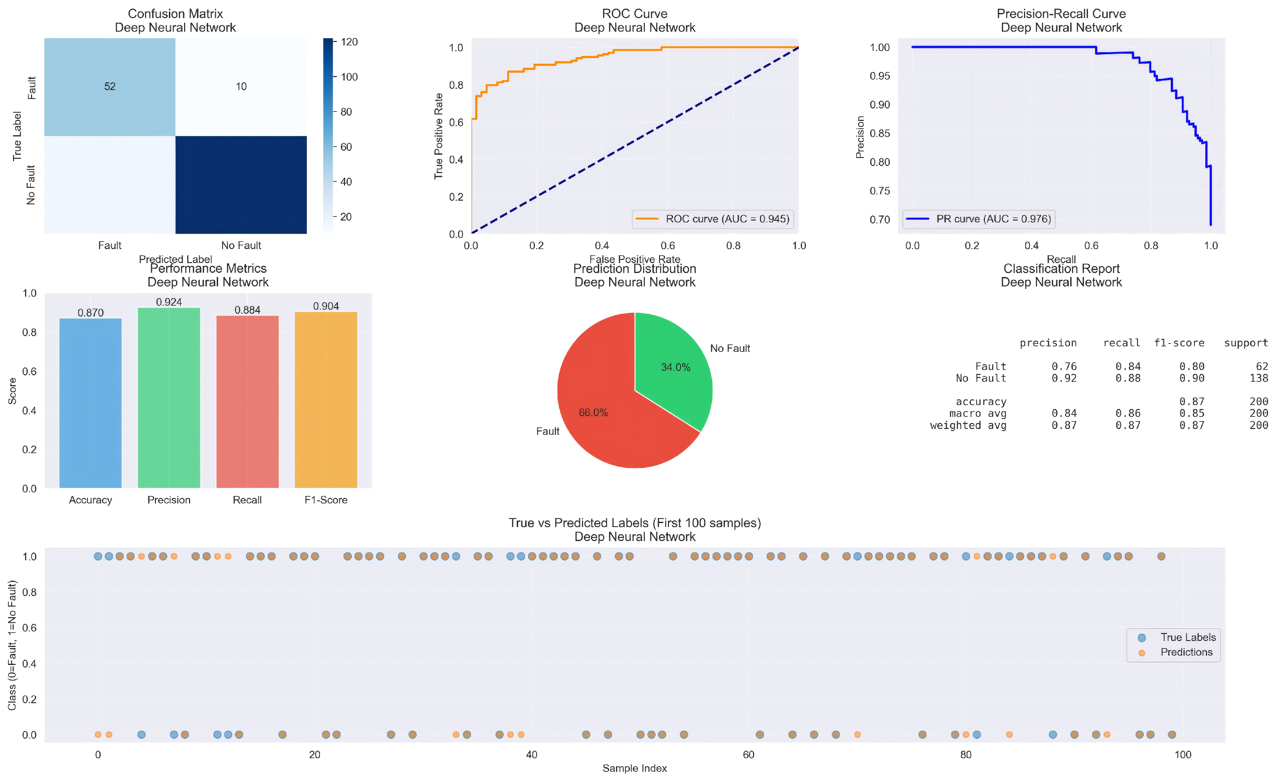 44]. In this study, fault classification was formulated as a binary task (normal vs. fault). Given the imbalanced nature of fault events, the F1-score is adopted as the primary performance objective for model selection and comparative evaluation, while accuracy and AUC–ROC are reported as complementary metrics.