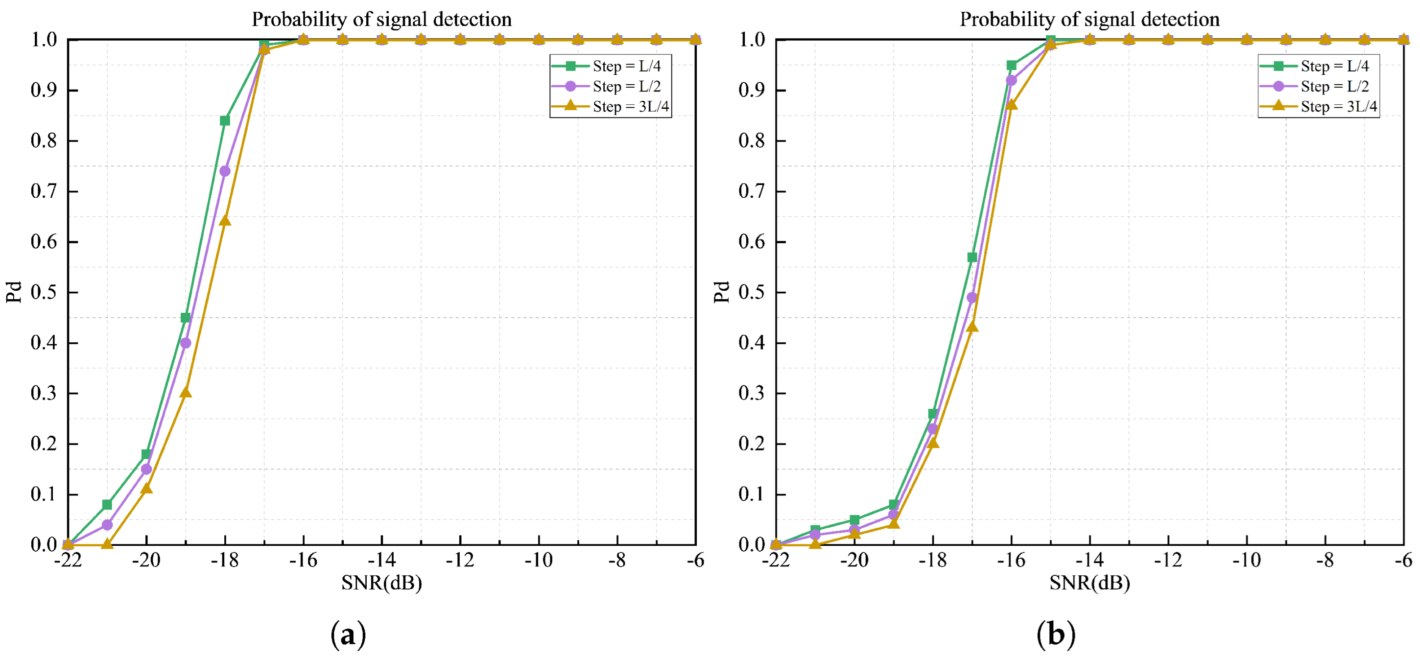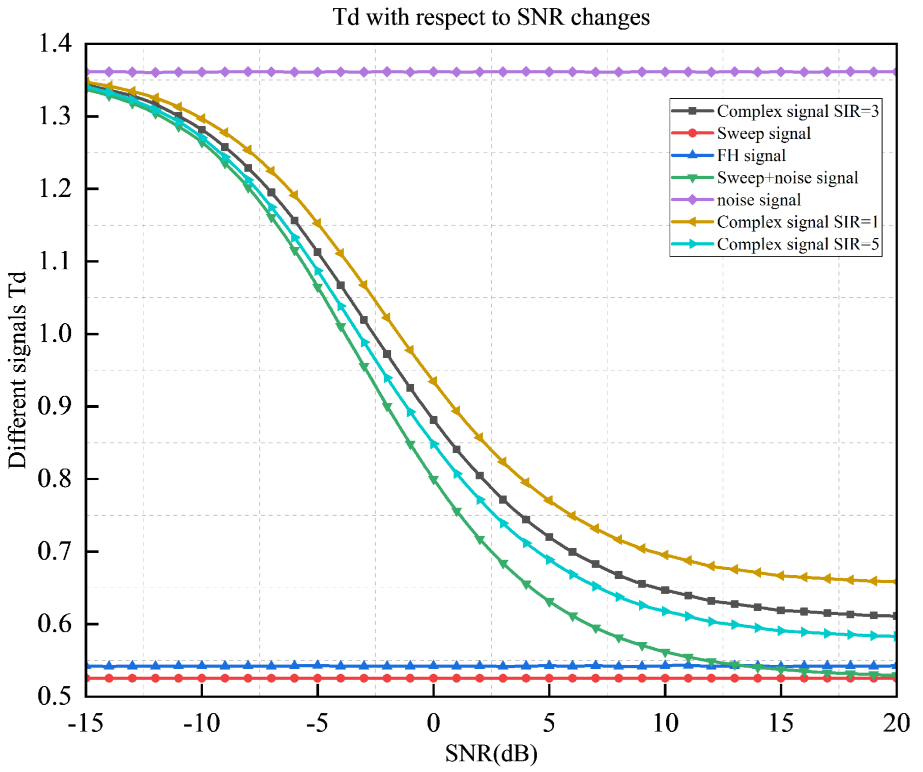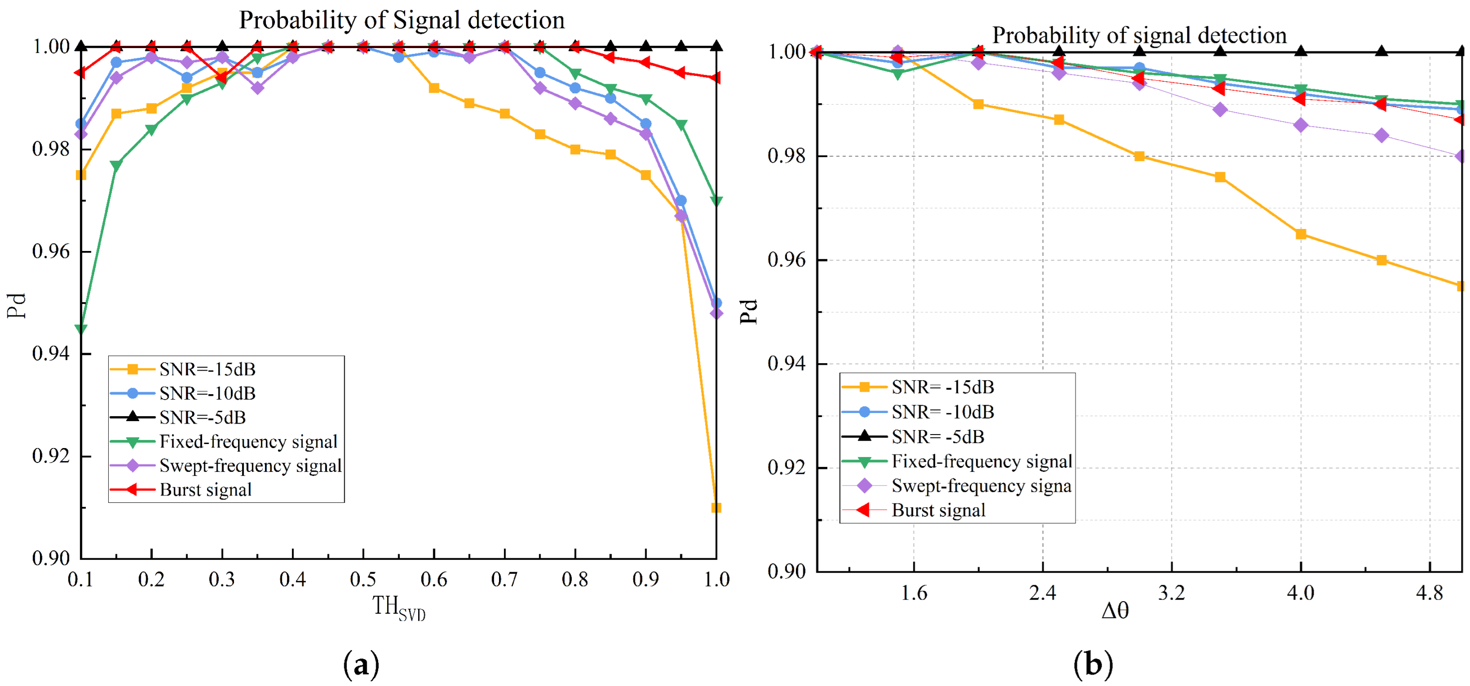 - Signal detection performance under varying interference levels.