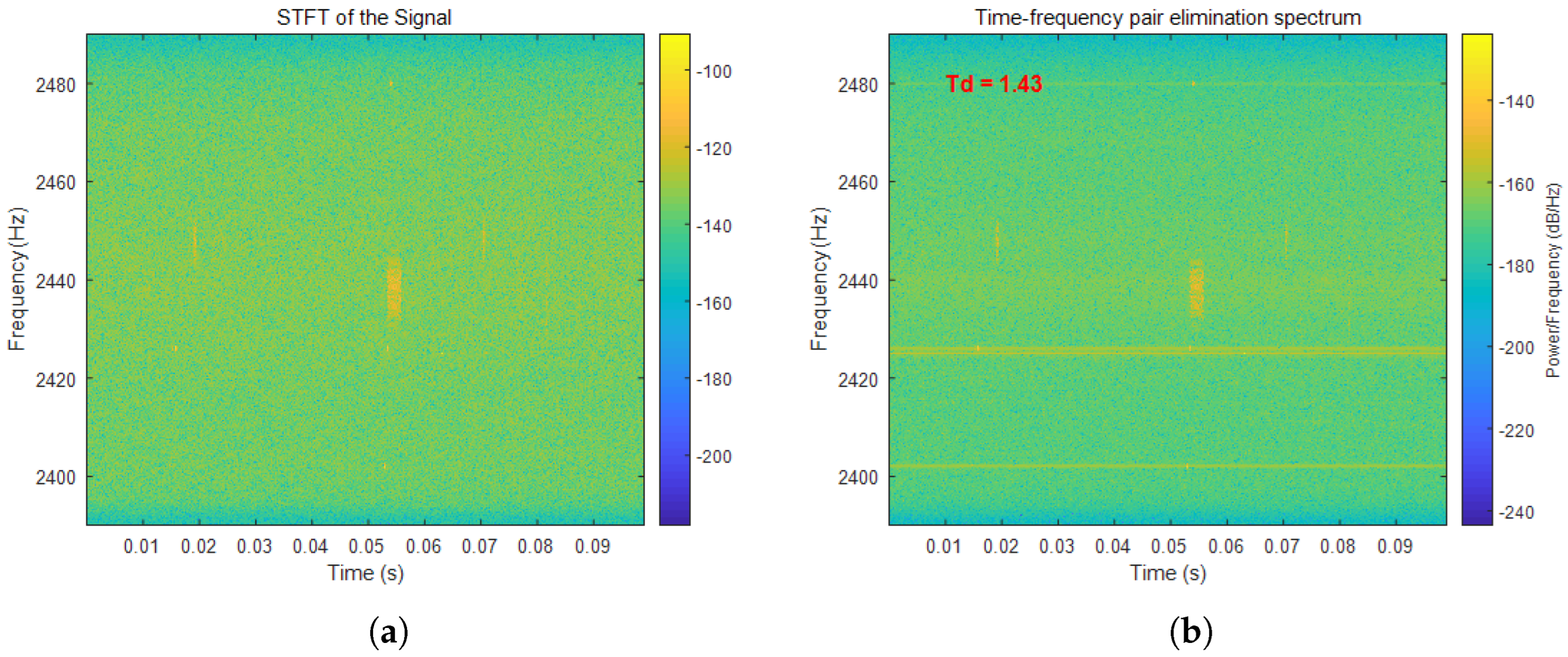 3.2. Signal Feature Analysis Based on Time–Frequency Cancellation