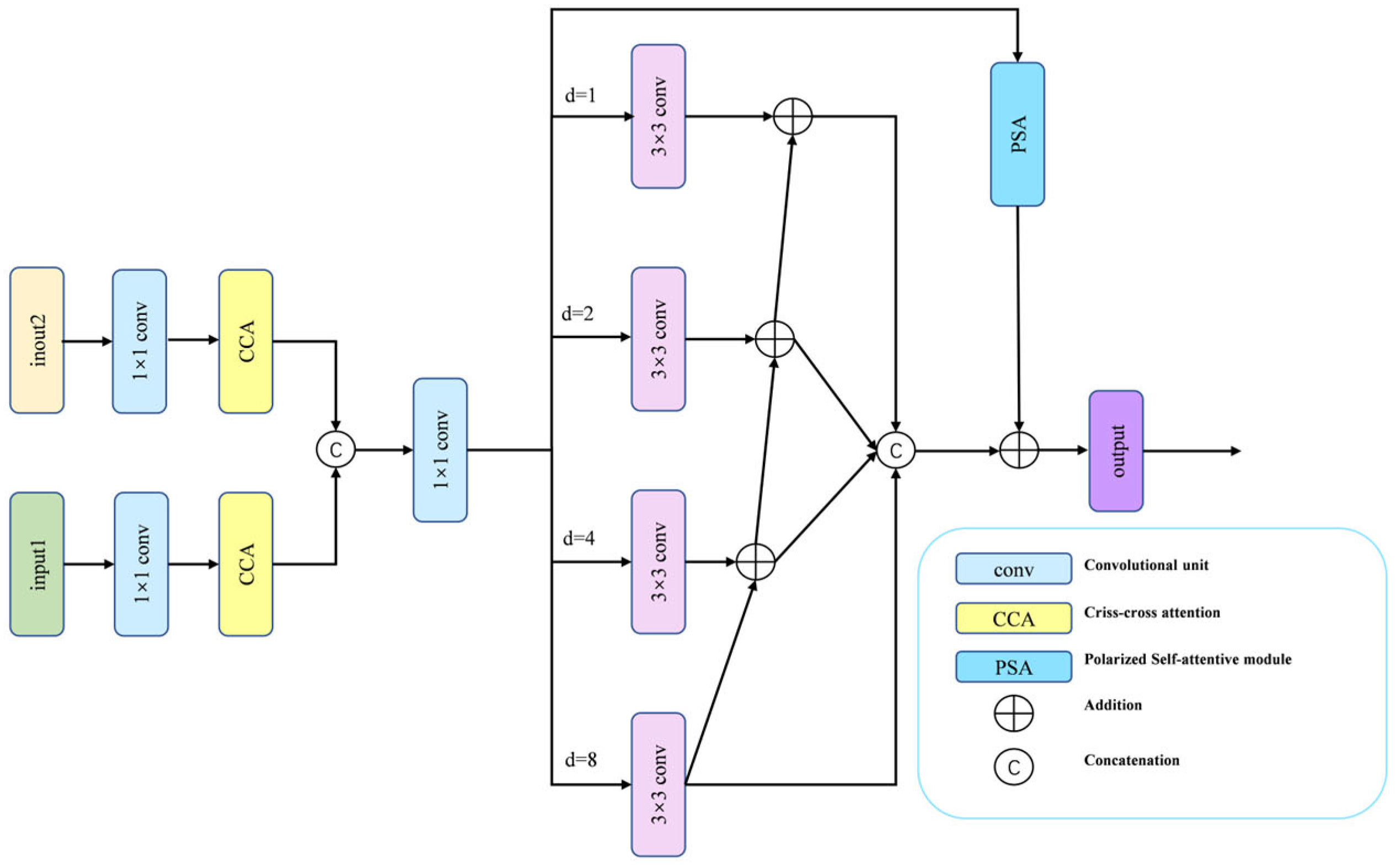 - A multi-scale feature fusion attention module called MFA is proposed. This module refines and enriches backbone features through convolutional branches of different receptive fields, thereby integrating more comprehensive local and global information.