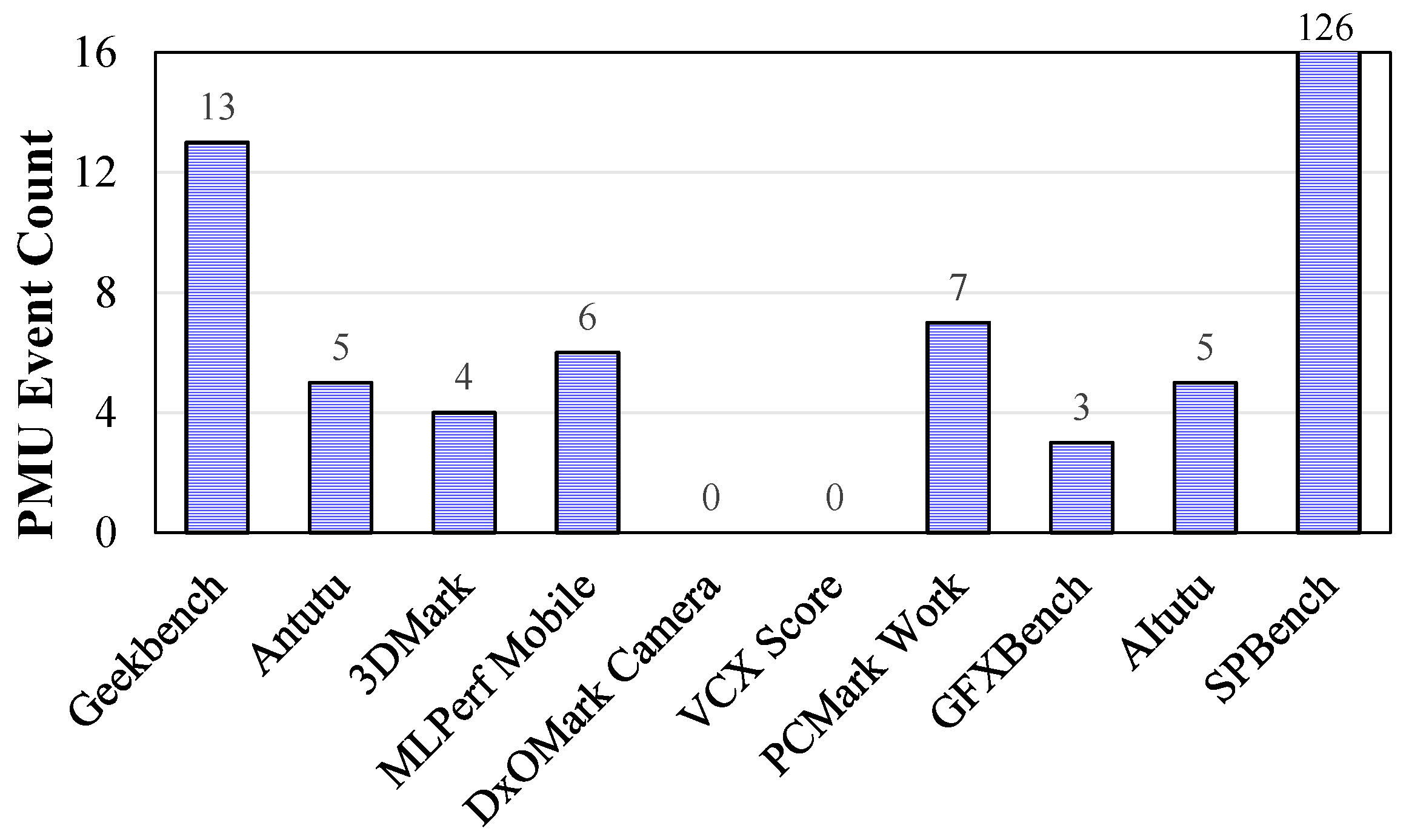- Ouyang, C.; Xin, J.; Zeng, S.; Li, G.; Li, J.; Yu, Z. Constructing a Supplementary Benchmark Suite to Represent Android Applications with User Interactions by using Performance Counters. ACM Trans. Archit. Code Optim. 2025, 22, 1–28. [Google Scholar] [CrossRef]