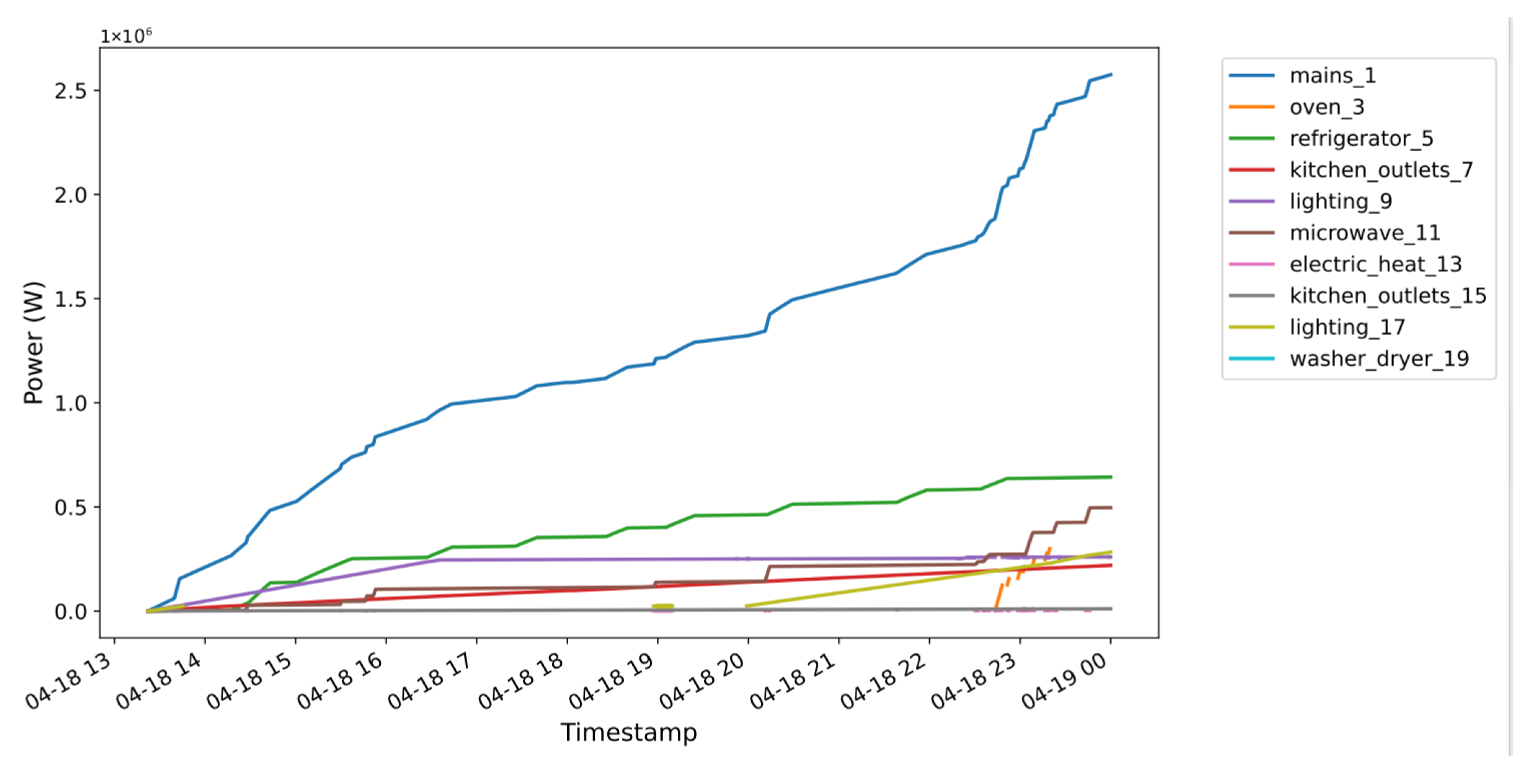 Figure 1 presents the cumulative power profiles of selected appliances in House 1, REDD low-frequency subset, after data cleaning and channel selection.