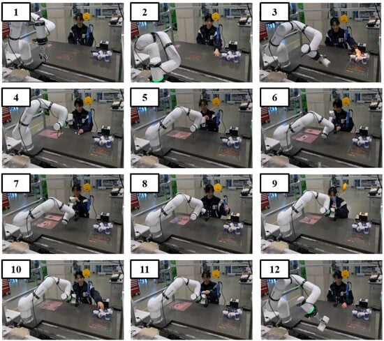 Subsequent manipulation actions—such as transport, placement, and alignment—are executed according to the sequence specified in the collaboration database. When the operator alters the object position or when the workspace configuration changes, updated perception inputs are immediately integrated into the controller, allowing the robot to adjust its motion in real time. It provides the essential capabilities required for the robot to carry out collaborative tasks using object recognition as its operational basis.