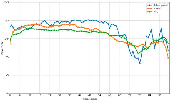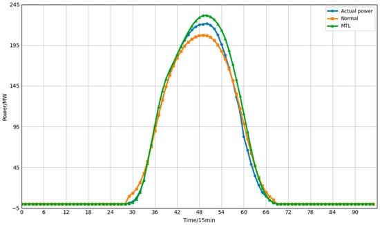 To validate the effectiveness of multi-task learning, while keeping all other conditions identical except for the multi-task learning approach, one power plant was randomly selected from each of the first and second sub-clusters. Additionally, one PV and one wind power plant were randomly selected from the third sub-cluster to train conventional single-site power prediction models based on the BiLSTM model for comparative verification. The results are shown in Figure 6, Figure 7, Figure 8 and Figure 9 and Table 2.