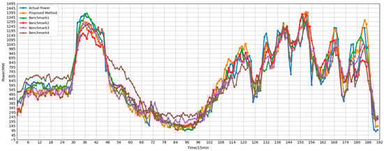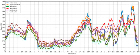 Overall, both Benchmark 1 and Benchmark 2 underperform compared to the proposed method in this paper, indicating that modeling either spatial or temporal dependencies alone results in information loss. The poor performance of Benchmark 3 further highlights the necessity of the prediction correction step. These results conclusively demonstrate that GCNs effectively capture spatial correlations among sub-clusters, while Transformers excel at modeling long-term temporal dependencies. Their synergistic integration significantly enhances the accuracy and stability of cluster power generation forecasting. Consequently, the proposed GCN-Transformer correction model exhibits distinct advantages in fusing spatiotemporal features, providing an effective technical pathway for large-scale renewable energy cluster power forecasting.