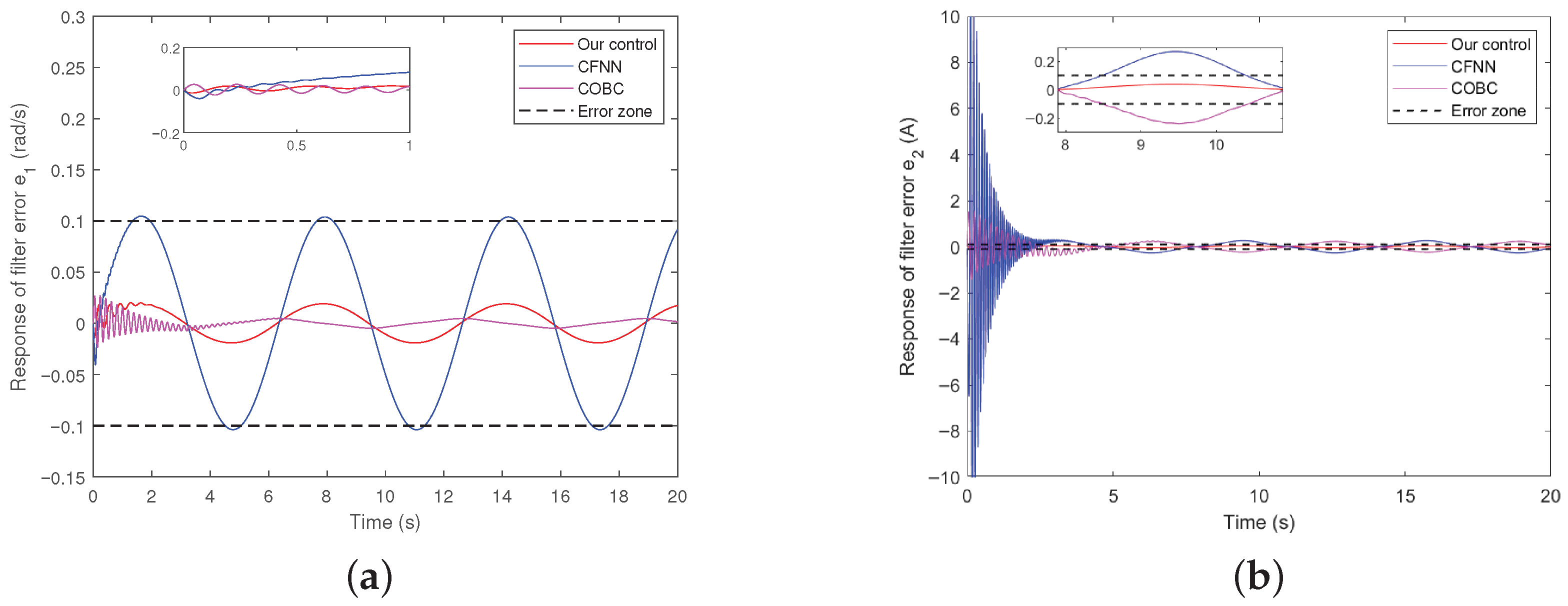 - Liu, J.; Wang, Q.G.; Yu, J. Command-Filter-Approximator-Based Adaptive Control for Uncertain Nonlinear Systems and Its Application in PMSMs. IEEE Trans. Syst. Man Cybern. Syst. 2023, 53, 6828–6835. [Google Scholar] [CrossRef]