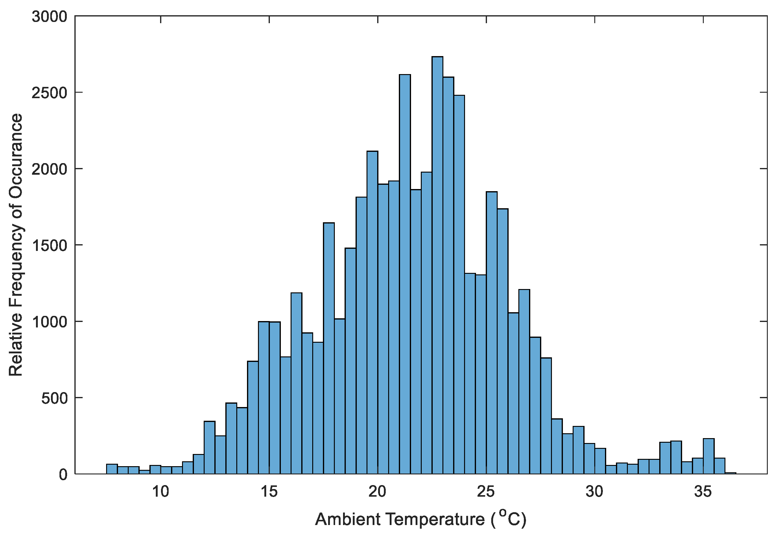 Figure 16. The data points are widely dispersed, and no clear trend is visible. This confirms the earlier conclusion from the correlation analysis that ambient temperature on its own is a poor predictor of power output. In practical terms, it can be concluded that performance models or control strategies that rely solely on ambient temperature measurements are likely to be inaccurate for an integrated AC-PV module; direct or derived measurements of module temperature are essential.
