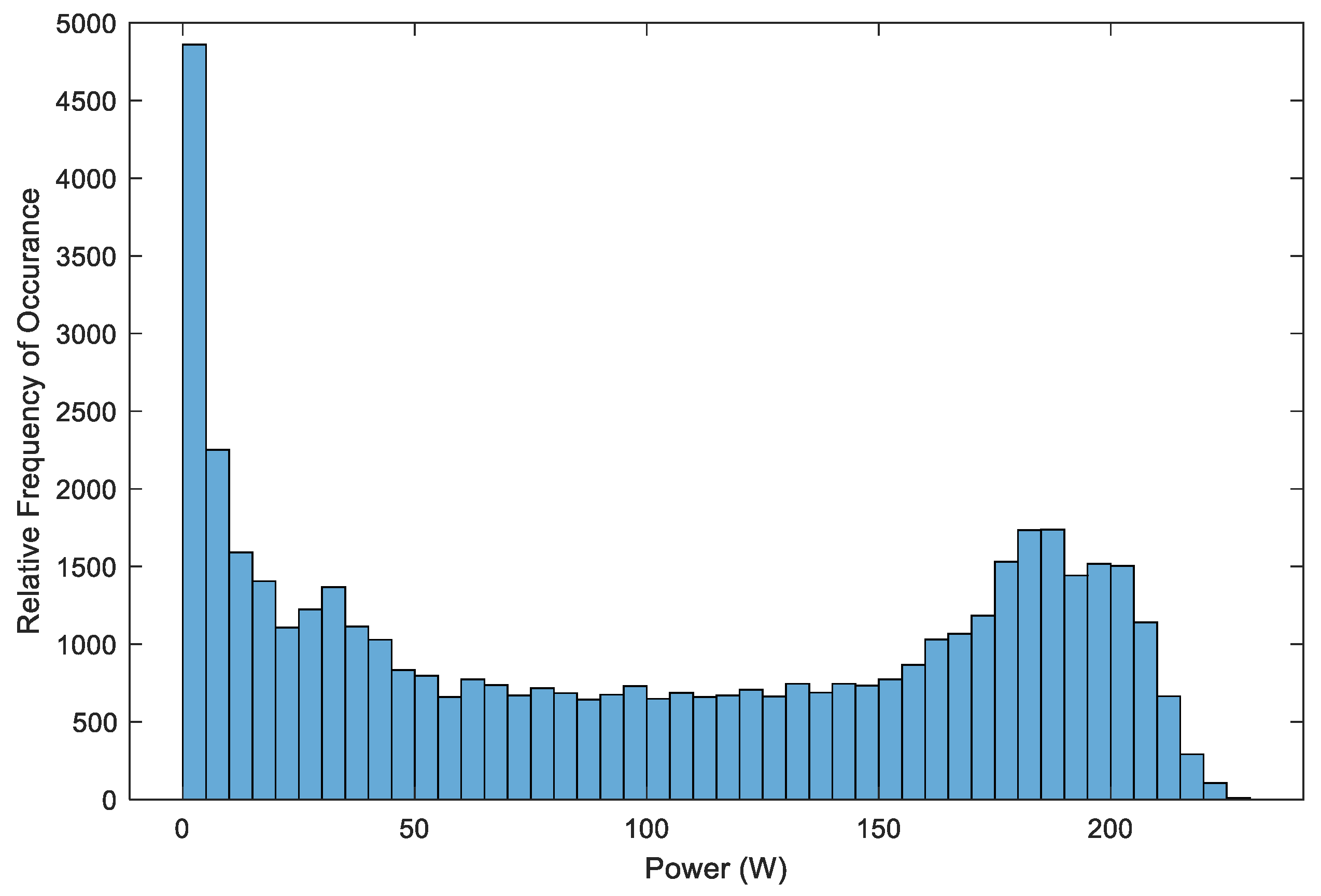 Figure 9 exhibits the expected pattern: most of the high-power operating points are concentrated around the central daylight hours, while lower power levels are more frequently observed near the beginning and end of the daily operating window.