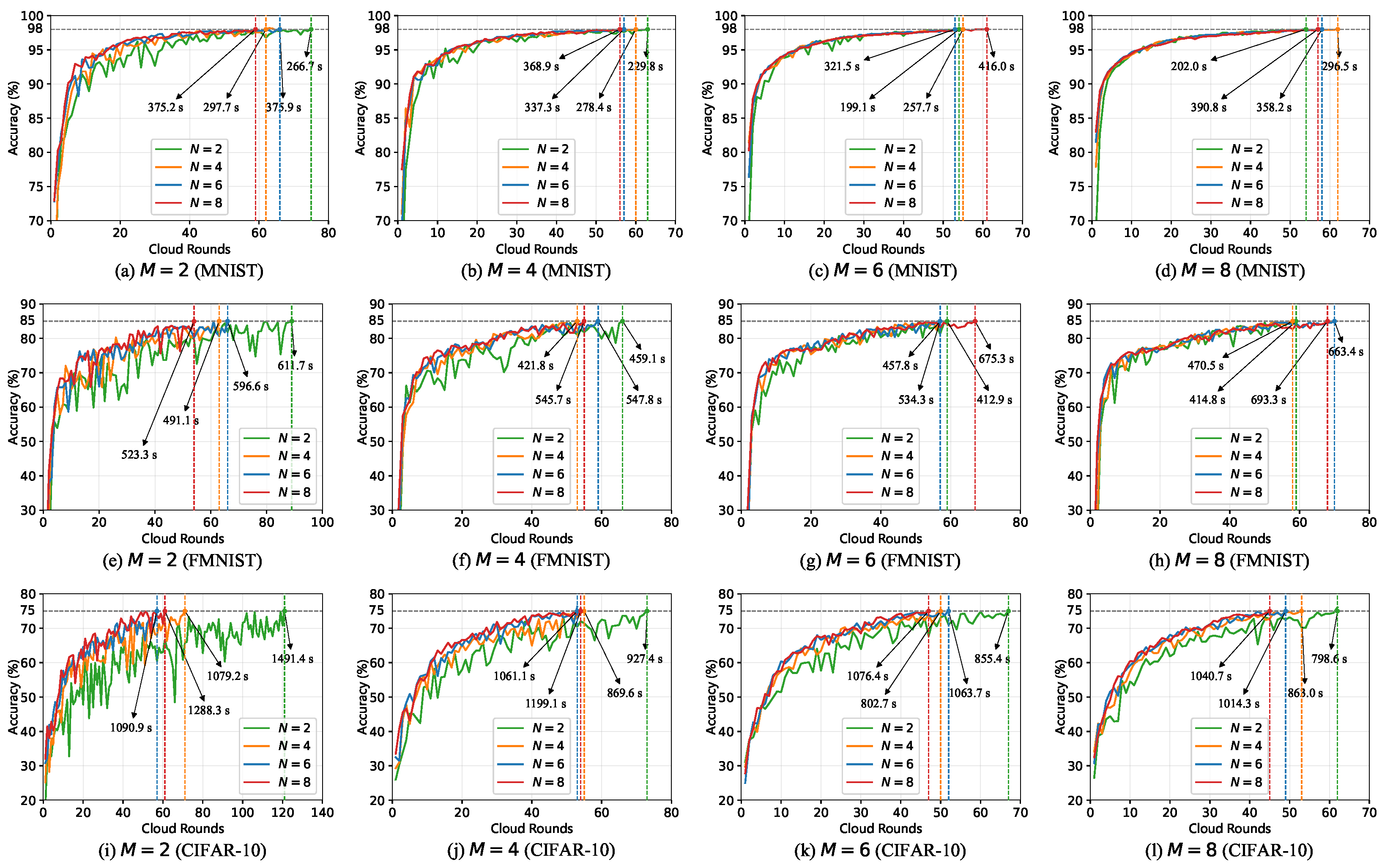 | Convergence threshold for three HFL tasks, | |