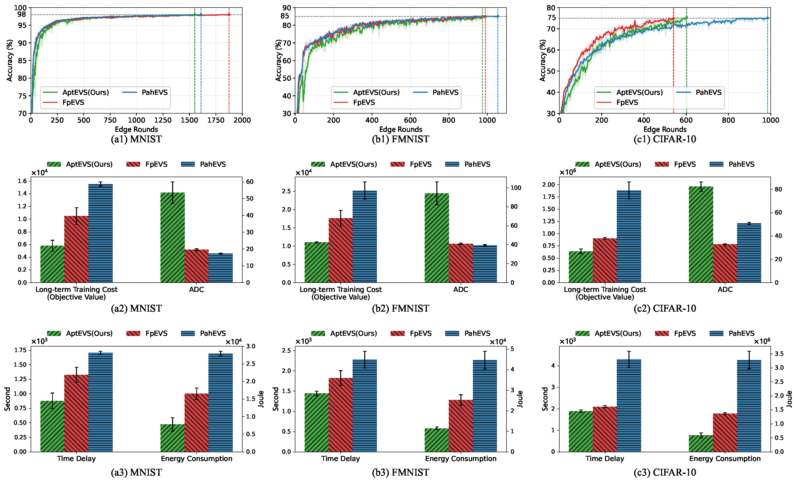- Comprehensive Cost Metric: We formulate a holistic training cost metric for VHFL systems, integrating accuracy deviation cost (ADC), time delay cost (TDC), and energy consumption cost (ECC) to quantitatively evaluate performance against task-specific requirements.