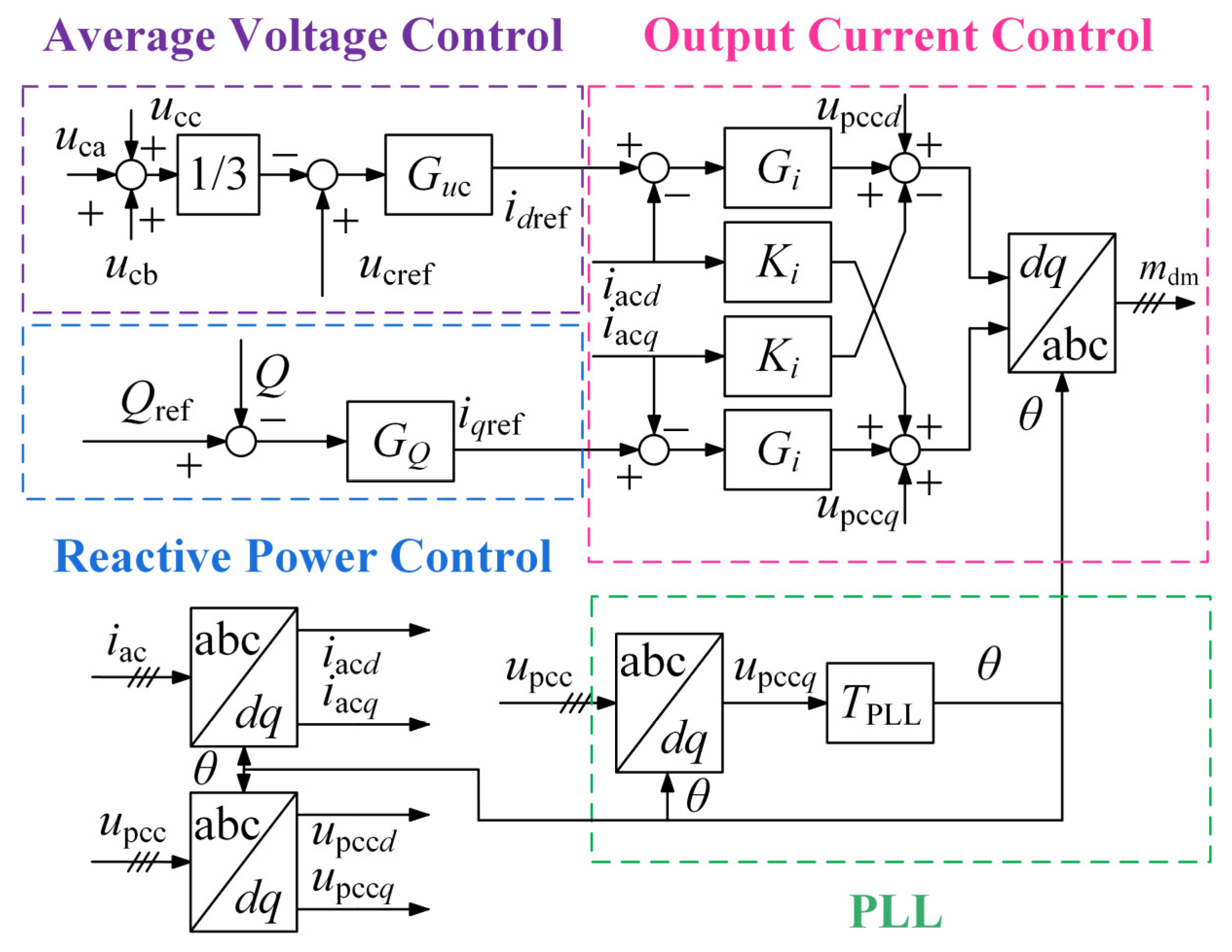 - Zhu, S.; Liu, K.; Liao, X.; Qin, L.; Huai, Q.; Xu, Y.; Li, Y.; Wang, F. D-Q Frame Impedance Modeling of Modular Multilevel Converter and Its Application in High-Frequency Resonance Analysis. IEEE Trans. Power Deliv. 2021, 36, 1517–1530. [Google Scholar]