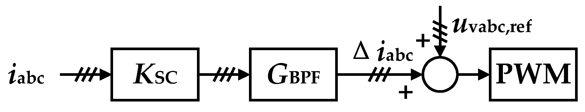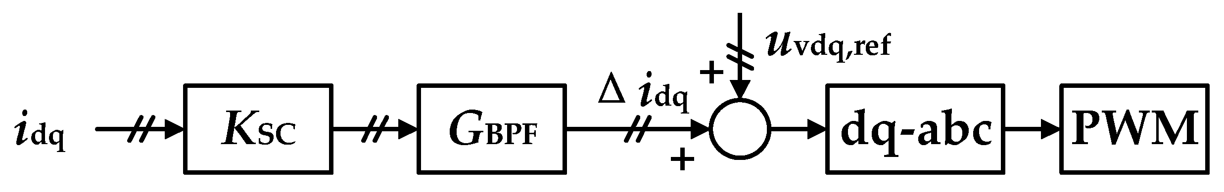 - An abc-frame supplementary control is proposed, in which the output current is fed forward through a proportional gain and band-pass filter to the valve-side reference, avoiding coordinate transformation and frequency shifts while allowing reliable tuning of the characteristic frequency.