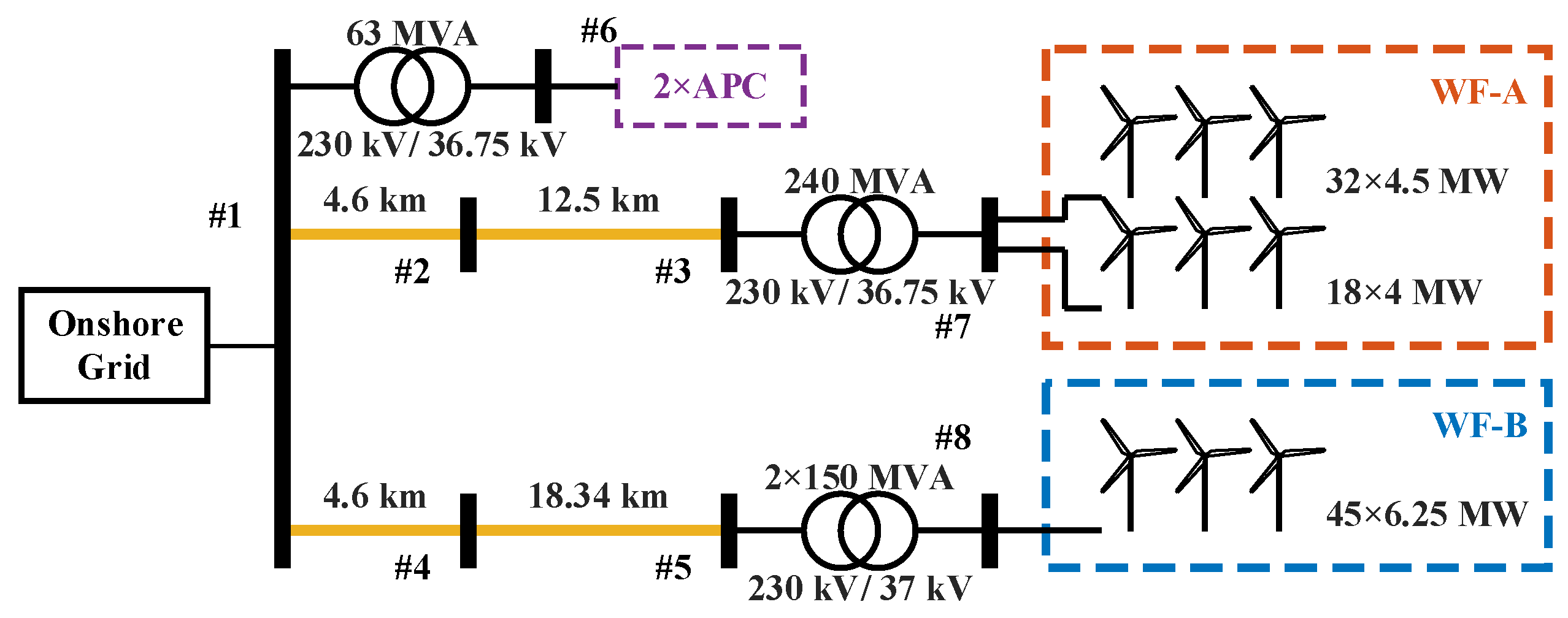 - Zhang, Y.; Wang, Y.; Zhang, D.; Chen, X.; Gong, C. Broadband Impedance Shaping Control Scheme of MMC-Based STATCOM for Improving the Stability of the Wind Farm. IEEE Trans. Power Electron. 2021, 36, 10278–10292. [Google Scholar] [CrossRef]