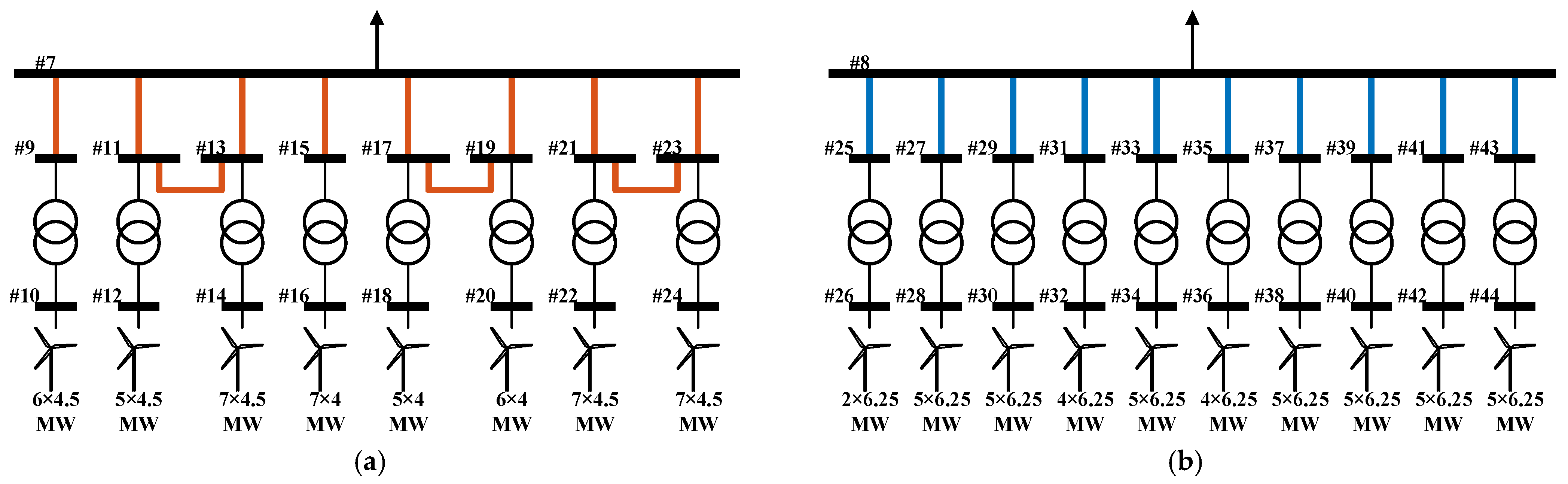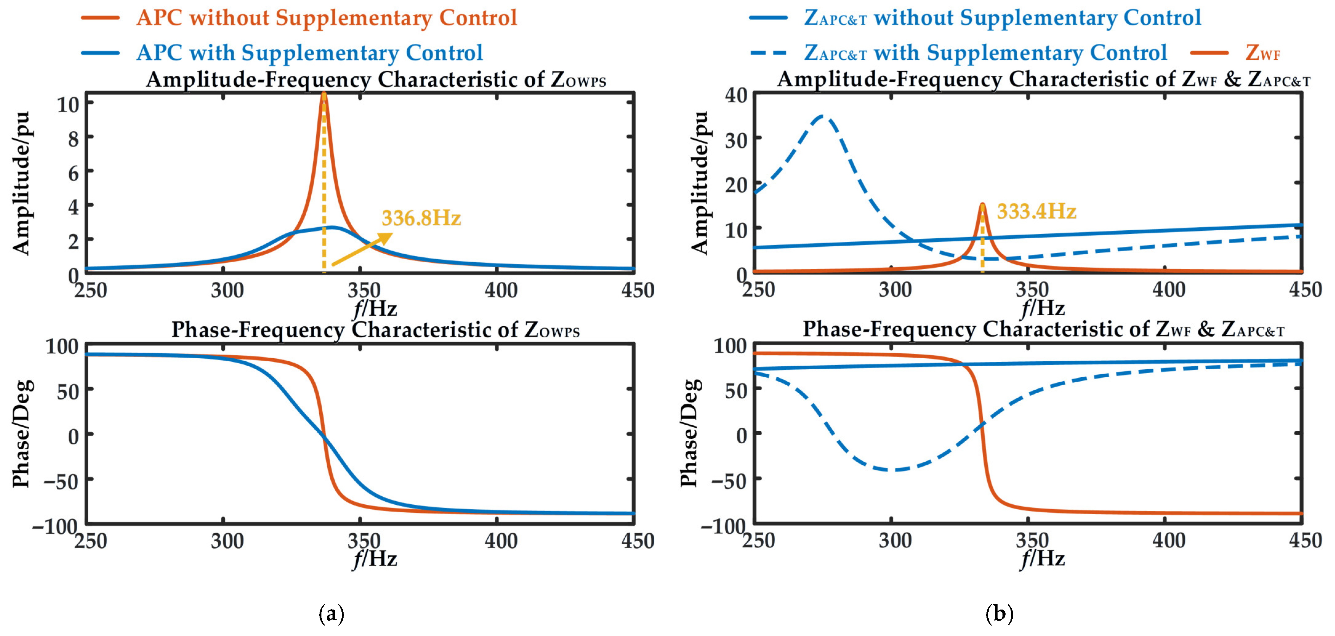 - Li, G.; Wang, W.; Liu, C.; Jin, D.; He, G. Mechanism Analysis and Suppression Method of Wideband Oscillation of PMSG Wind Farms Connected to Weak Grid (Part I): Analysis of Wideband Impedance Characteristics and Oscillation Mechanism. Proc. CSEE 2019, 39, 6547–6562. [Google Scholar]