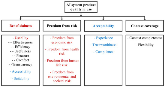 This paper addresses the growing need for reliable methods to evaluate the quality of artificial intelligence (AI) systems as they become widely used in both critical domains and everyday applications. The study aims to develop a metric-based approach to assessing AI system quality by harmonising product quality and quality in use models in line with updated international standards. To achieve this, the authors analyse existing ISO/IEC 25000 series standards, identifying inconsistencies between older and newer versions, and propose an updated quality model that incorporates both perspectives. Building on guidance documents, international standards, and contemporary research, the study introduces a set of metrics designed to measure new subcharacteristics of AI system quality, particularly where standardised metrics have not yet been developed. The proposed approach bridges the gap between established quality models (ISO/IEC 25010:2023, ISO/IEC 25019:2023, ISO/IEC 25059:2023) and standardised measurement practices (ISO/IEC 25023:2016, ISO/IEC 25022:2016), enabling more consistent and practical evaluation of AI systems. These metrics can be applied by researchers and practitioners to improve the quality of AI systems, enhance their reliability, and reduce risks associated with insufficient quality. Future work will focus on empirical validation of the proposed approach to confirm its applicability and usefulness across diverse AI applications. Full article