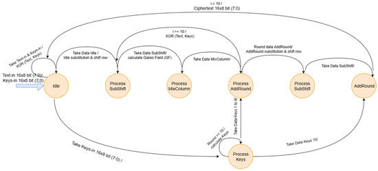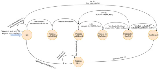 The present paper compares and analyzes the design of AES-128 encryption and decryption using Finite State Machine (FSM) architecture on FPGA and MATLAB platforms. This study aims to evaluate performance disparities in terms of execution time, throughput, and hardware efficiency under identical input [...] Read more.