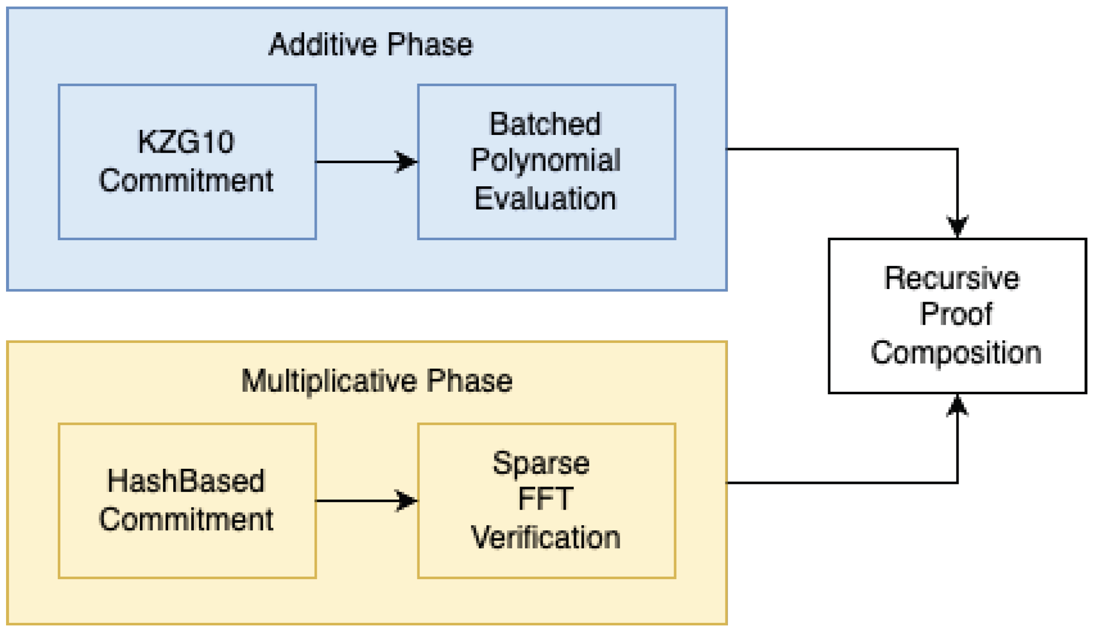 Comprehensive security through hybrid additive–multiplicative structure with pairing-based KZG10 and hash-based Merkle commitments.