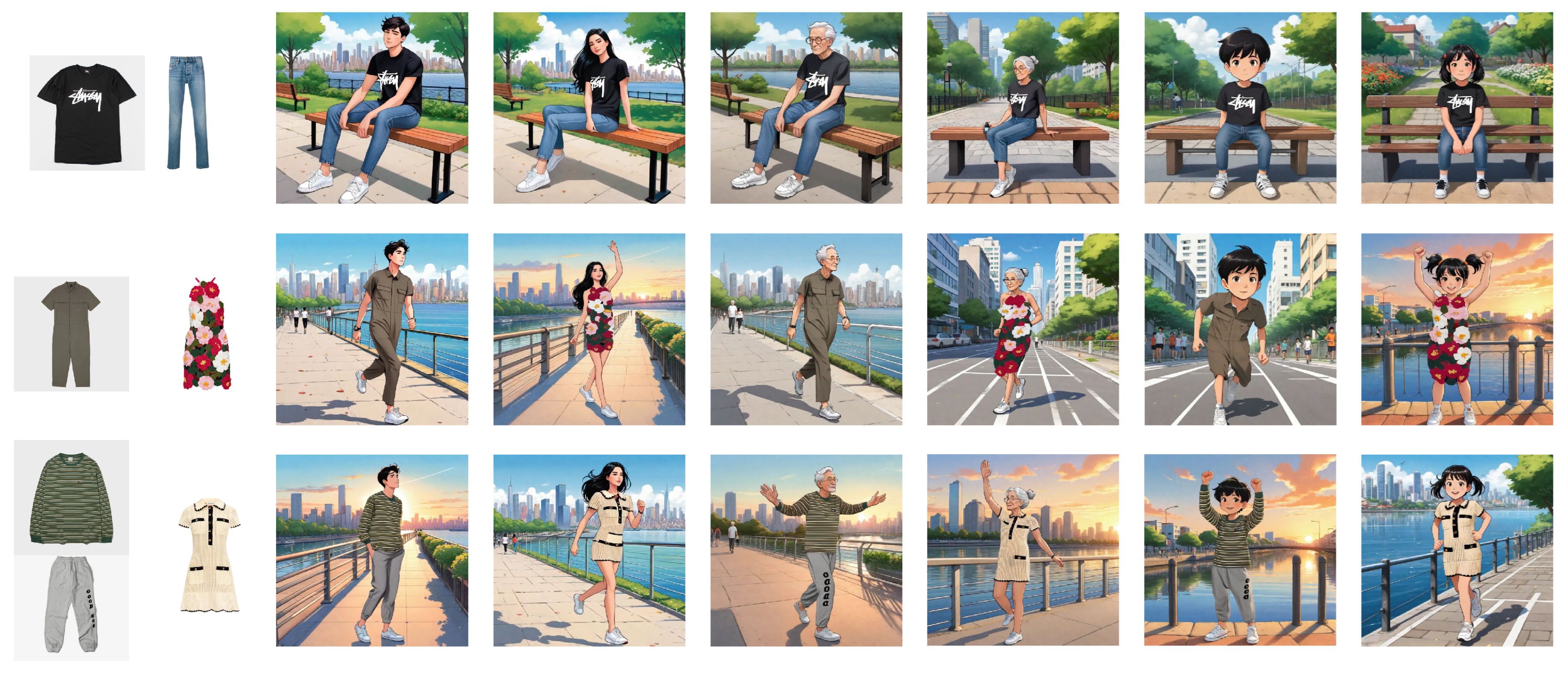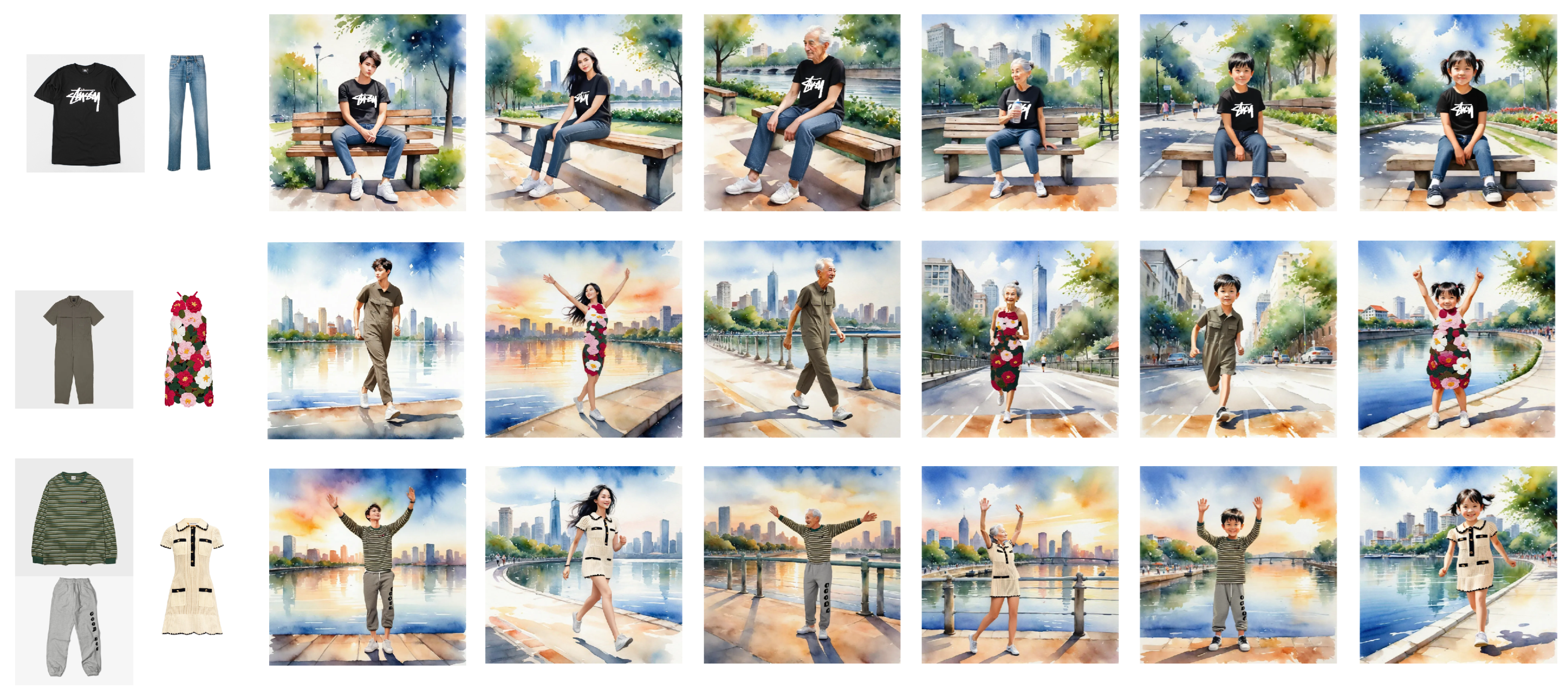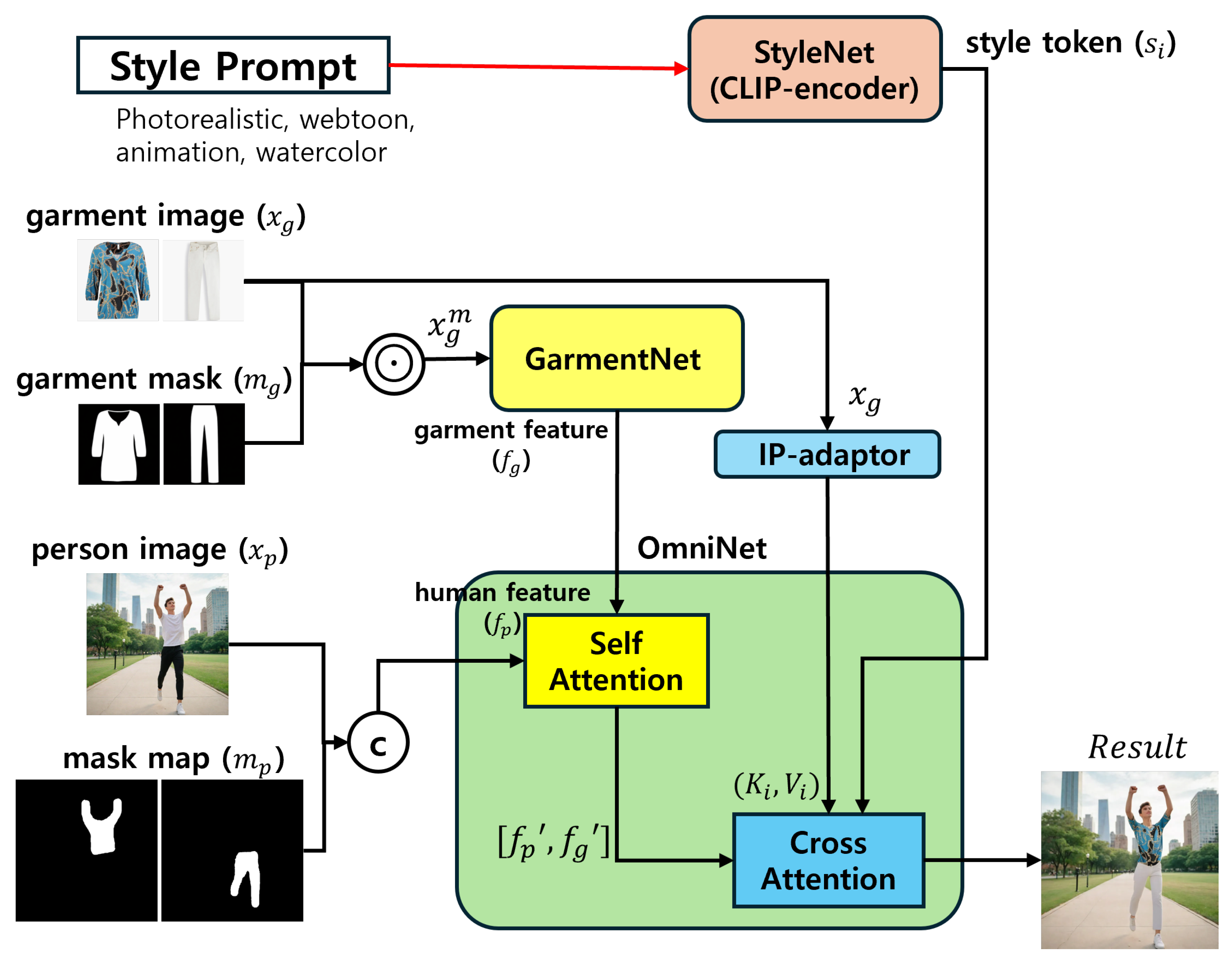 - StyleNet encodes style characteristics from various visual domains—including photorealistic, animation, webtoon, and watercolor—and injects them into the attention layers of the diffusion network.