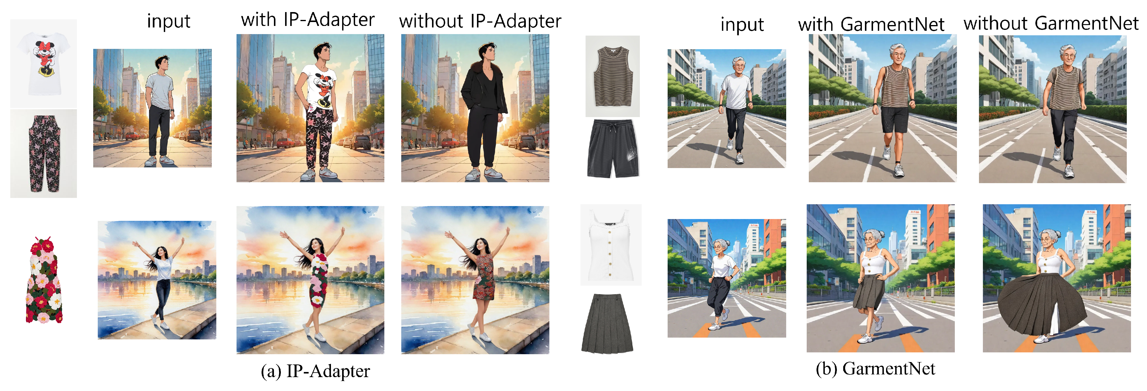 Chicago/Turabian StyleChoi, Wooseok, Heekyung Yang, and Kyungha Min. 2026. "A Style-Adapted Virtual Try-On Technique for Story Visualization" Electronics 15, no. 3: 514. https://doi.org/10.3390/electronics15030514