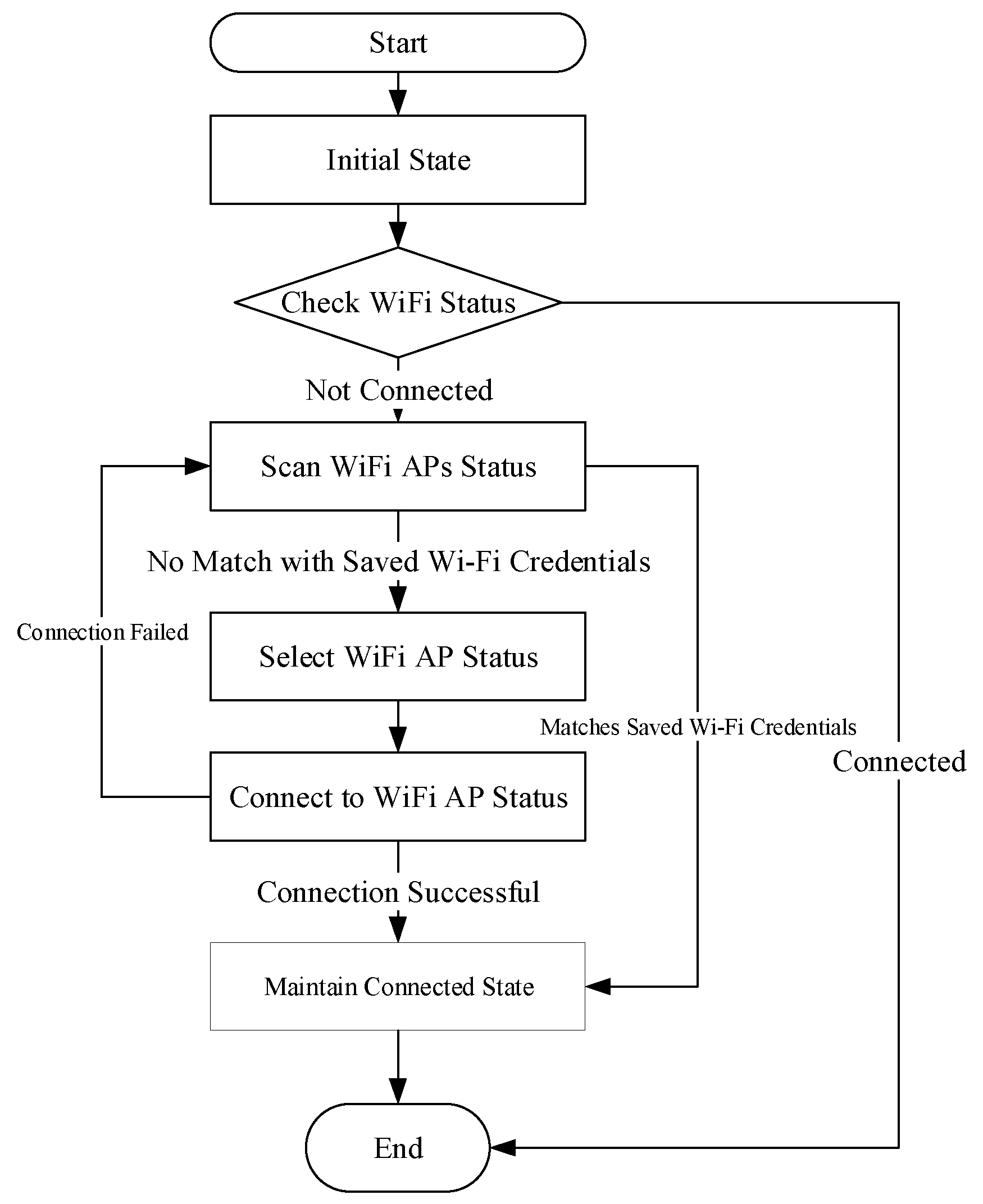 State machine process of the Wi-Fi auto reconnection mechanism.
