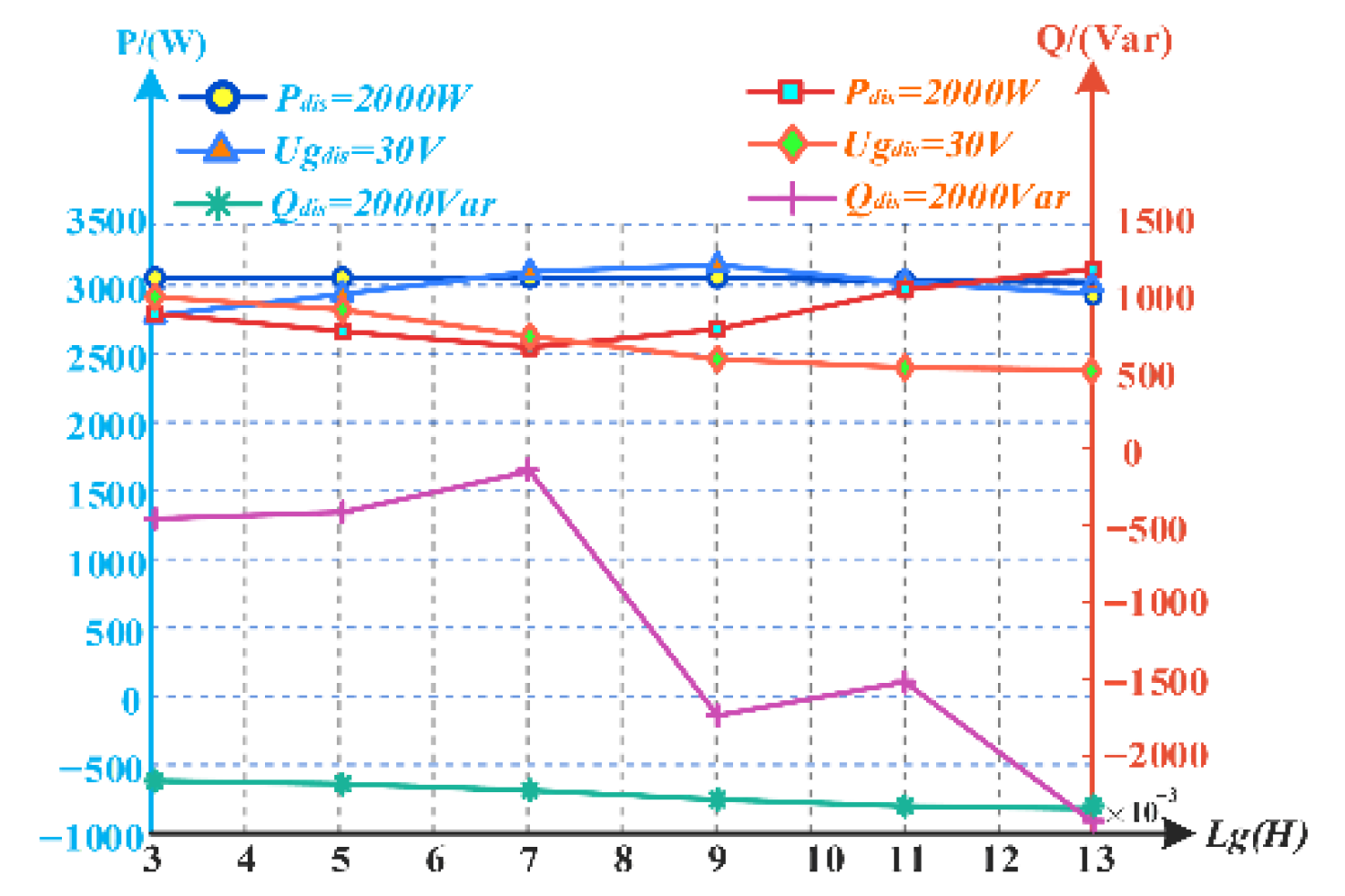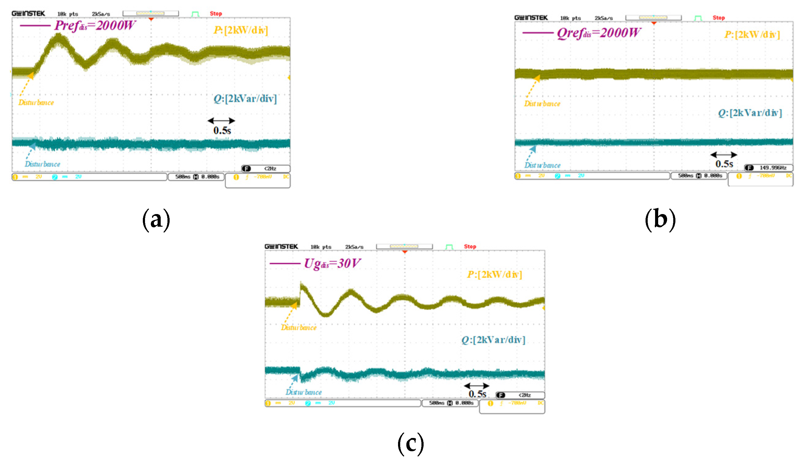 | Disturbance | Pdiss = 2000 W | Qdiss = 2000 Var | Ugdiss = 30 V | |||