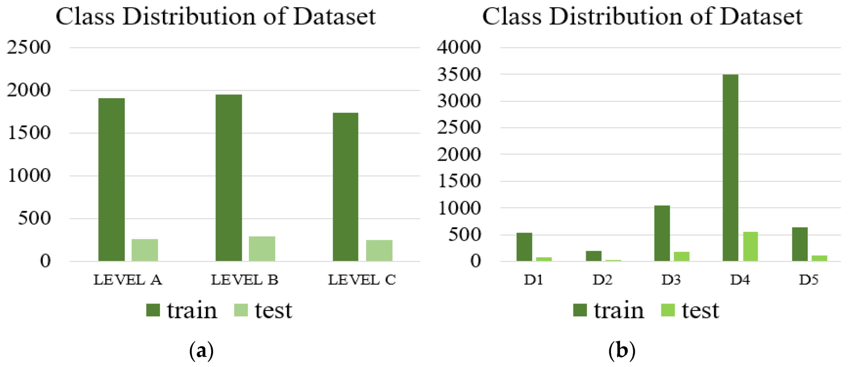 Figure 1b. This subset was originally annotated for object detection tasks and was reconstructed in this study as a multi-label classification dataset, comprising more than 50,000 images in total. From this subset, 6000 images were randomly selected for training, 900 images were used as a test set that was also employed as a validation set to monitor training convergence, and an additional 990 images formed an independent test set for final performance evaluation.