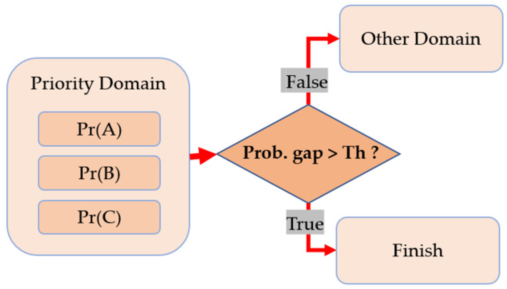 Figure 8). If the difference between the highest and second-highest predicted probabilities from the spatial-domain model is smaller than a confidence threshold TH, the spatial-domain prediction is considered uncertain, and the system defaults to the prediction from the frequency-domain model. Otherwise, the spatial-domain result is used.