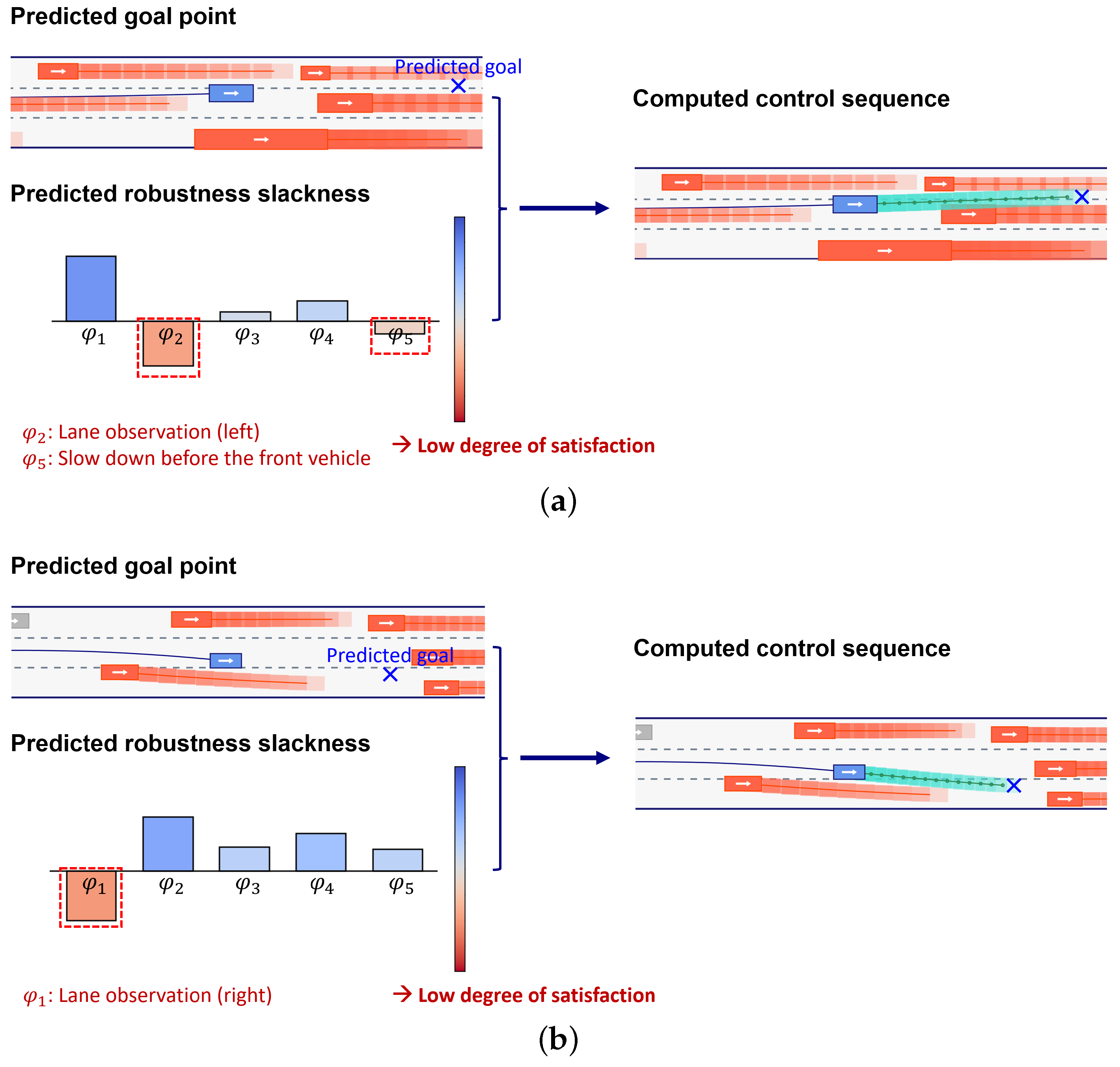 Figure 4a, the predicted goal point lies in the left lane and the slackness relaxes