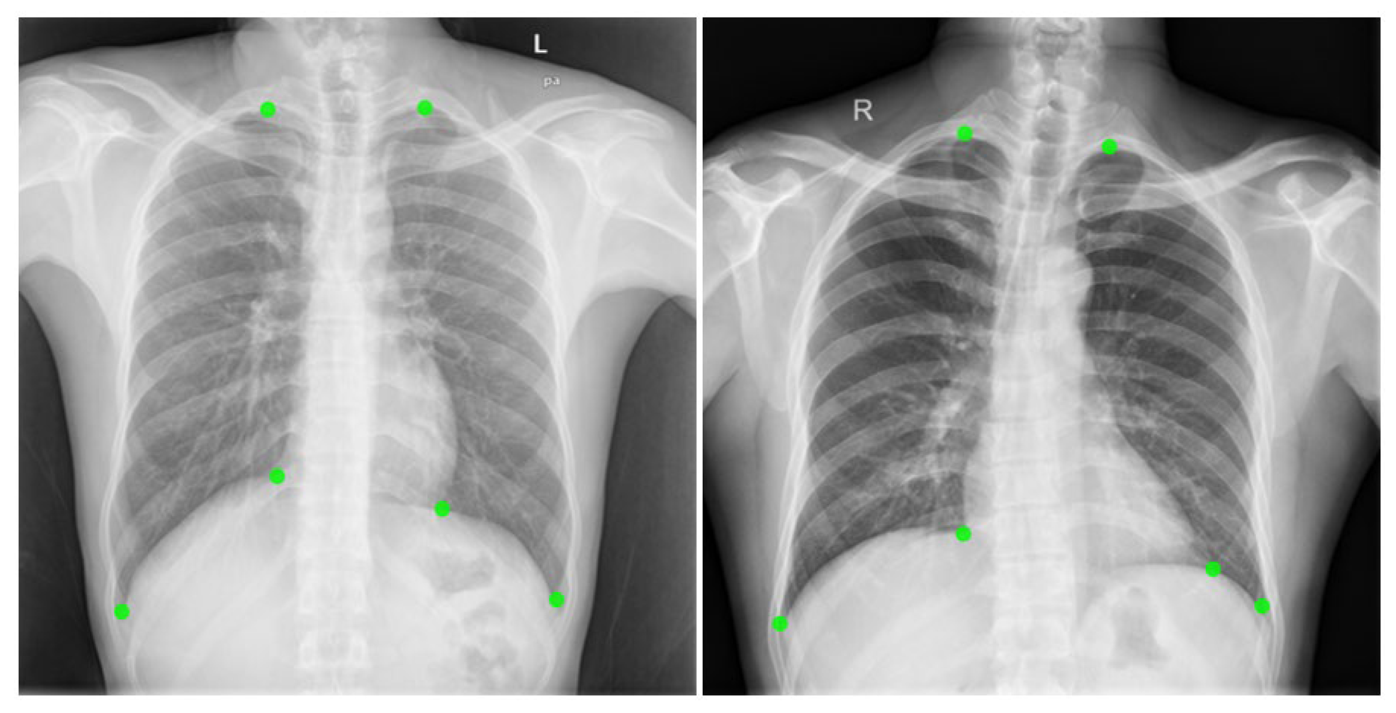 This dataset contains 279 publicly available chest X-ray images, each annotated with six landmarks [