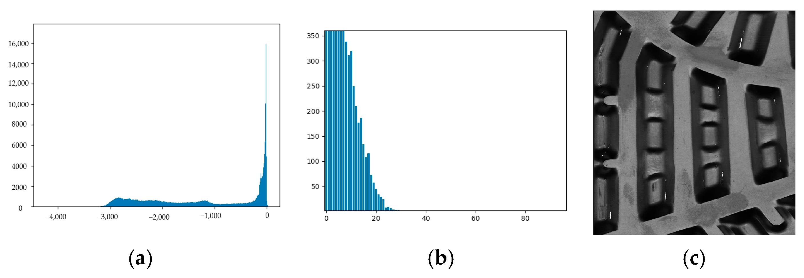 Figure 11a displays the feature distribution (range [−4249, 32]),