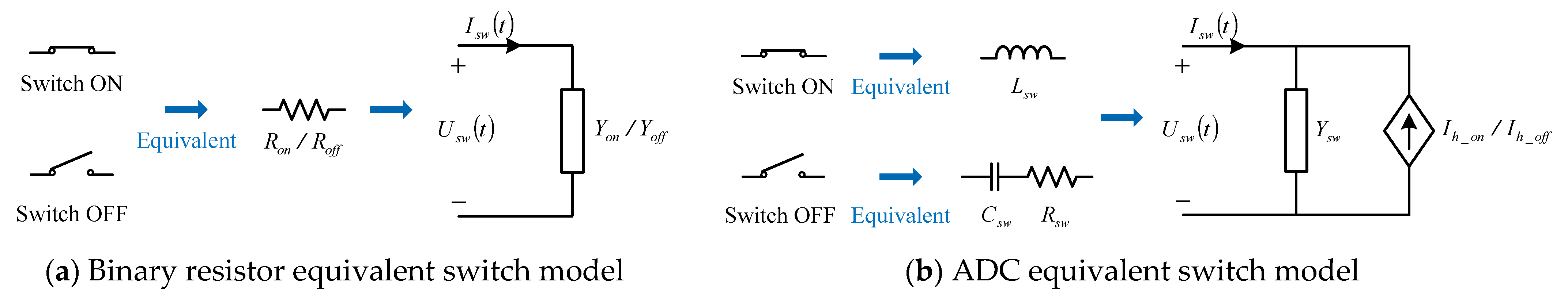 Figure 6). The first uses a binary resistor to construct the switch model: a small resistance
