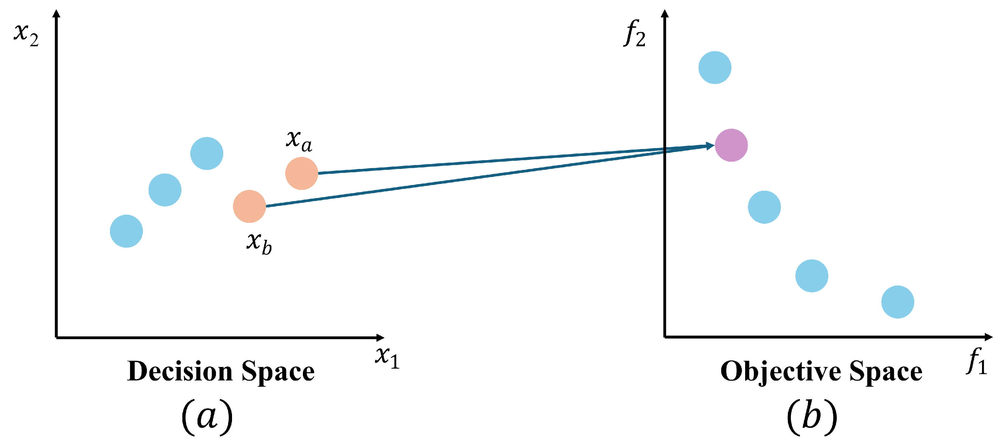 - Affinity-Based Elite Strategy: This strategy updates the sets of real vector and binary vectors by calculating affinity using random selection and Mahalanobis distance. By ensuring that real vectors are paired with the most compatible binary vectors, this method increases the likelihood of generating superior offspring solutions that are closer to the Pareto-optimal set.
