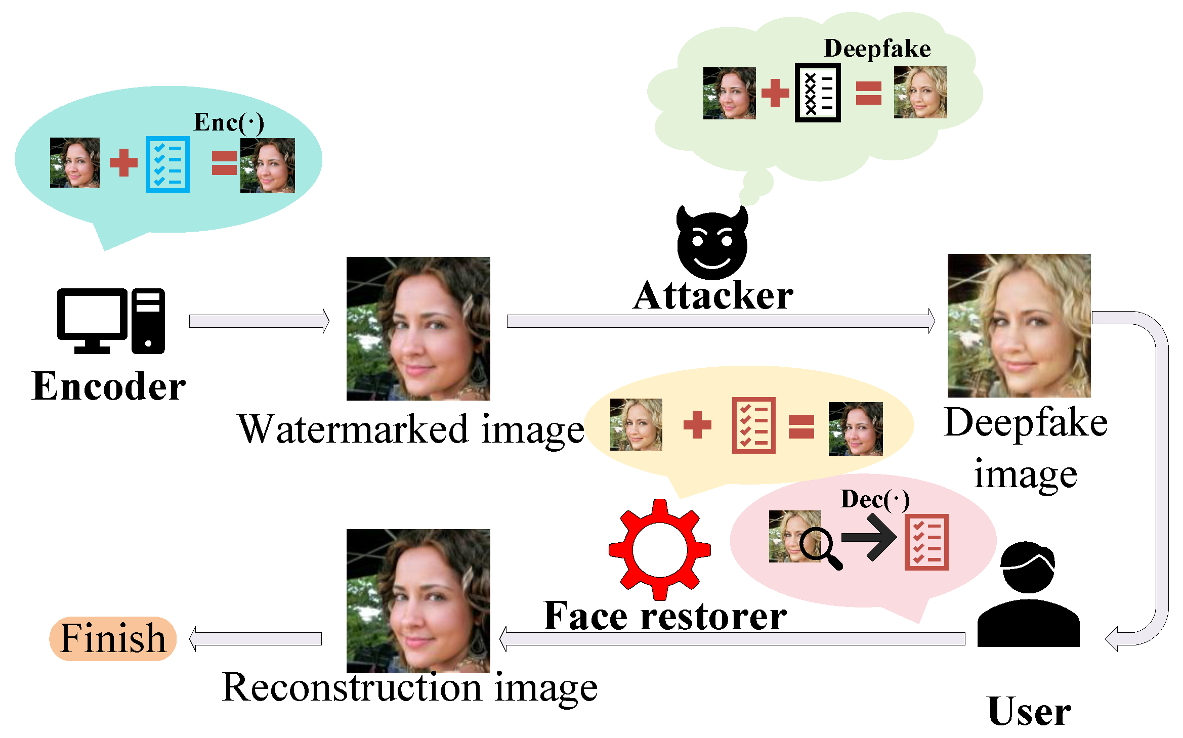 - A facial image recovery framework leveraging auxiliary watermark information has been developed. The framework restores deepfake images by extracting and utilizing guidance information from watermarks present in the images.
