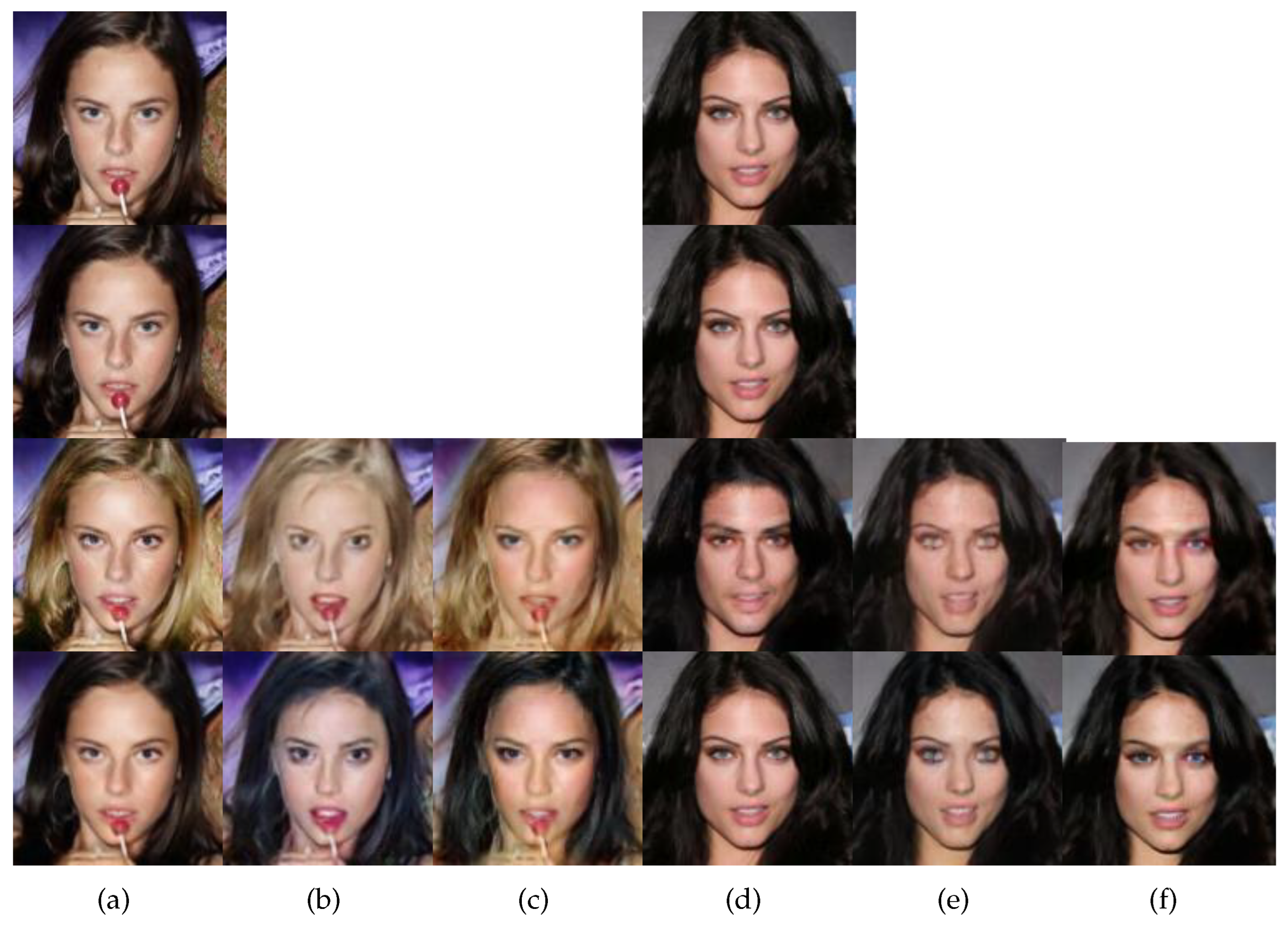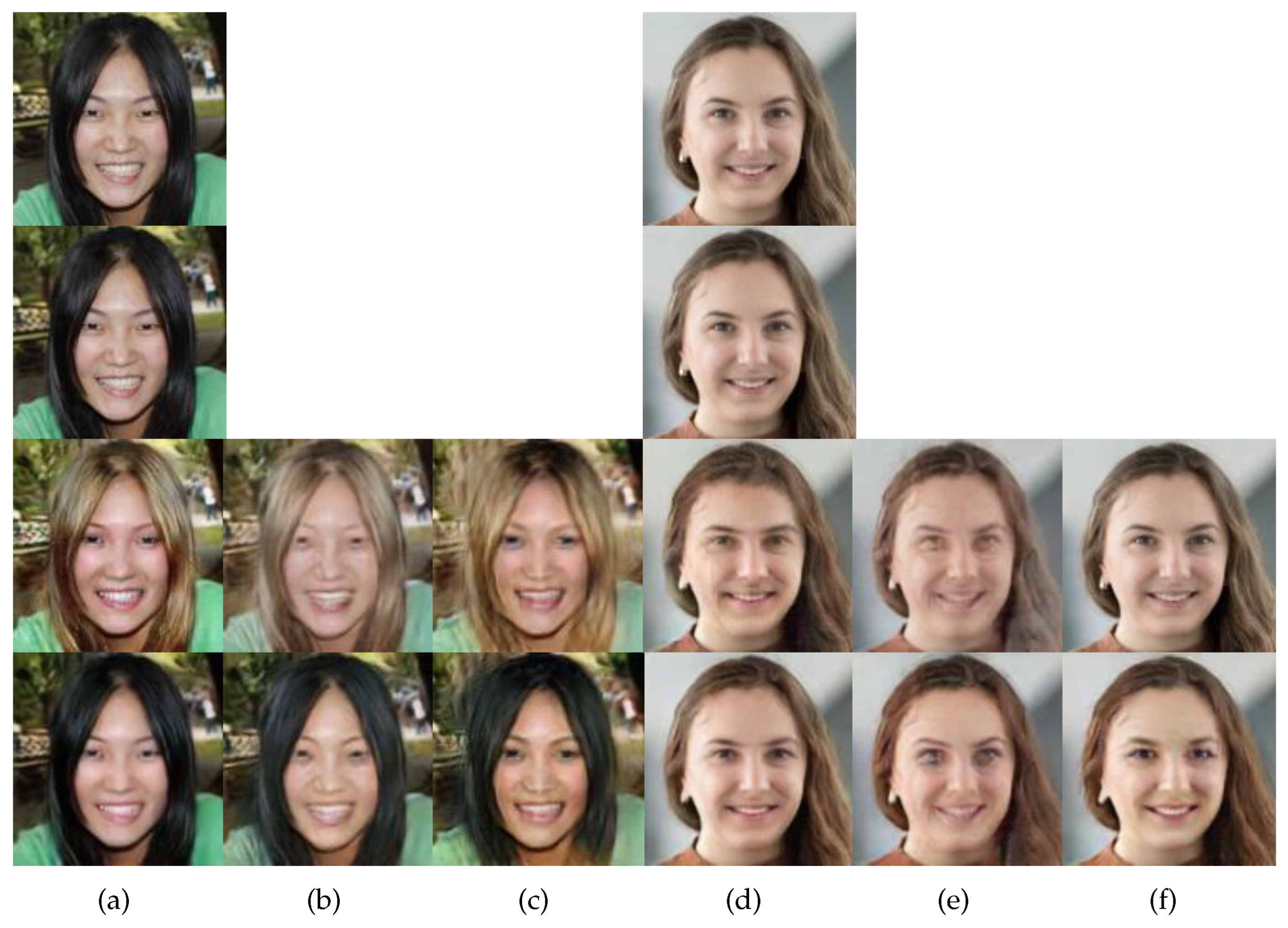 - He, Z.; Zuo, W.; Kan, M.; Shan, S.; Chen, X. AttGAN: Facial attribute editing by only changing what you want. IEEE Trans. Image Process. 2019, 28, 5464–5478. [Google Scholar] [CrossRef] [PubMed]