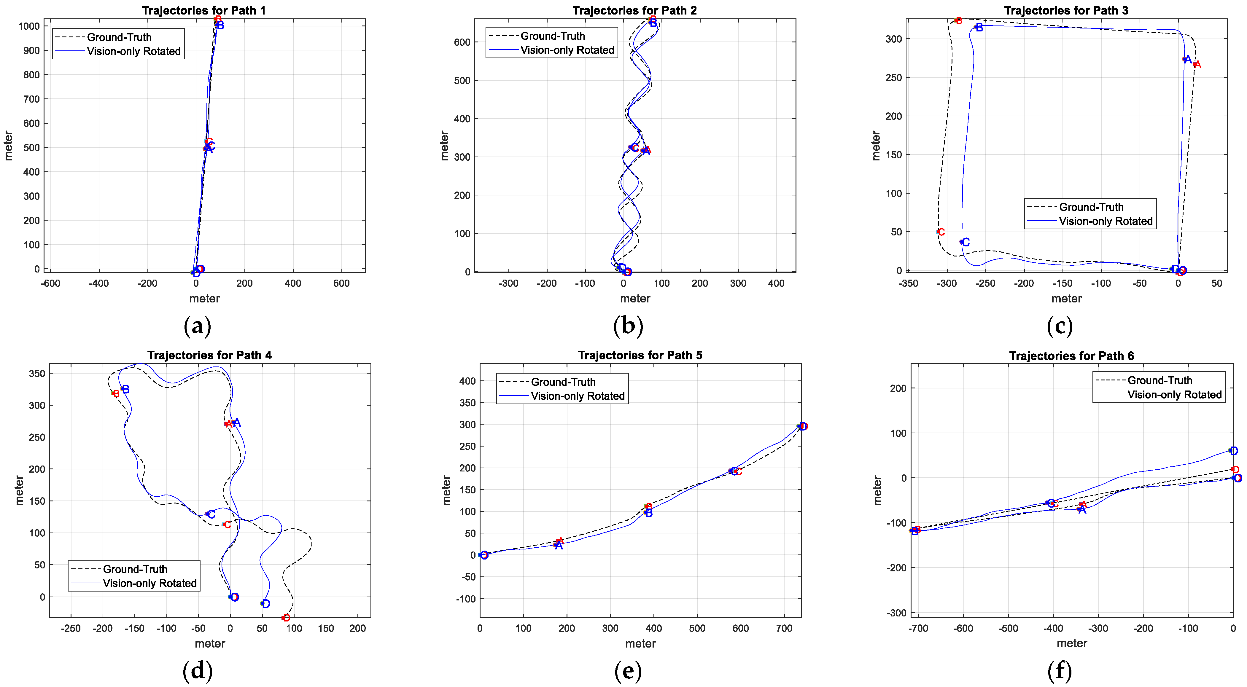 - Zhang, Z.; Scaramuzza, D. A Tutorial on Quantitative Trajectory Evaluation for SLAM. arXiv 2018, arXiv:1801.06581. [Google Scholar]