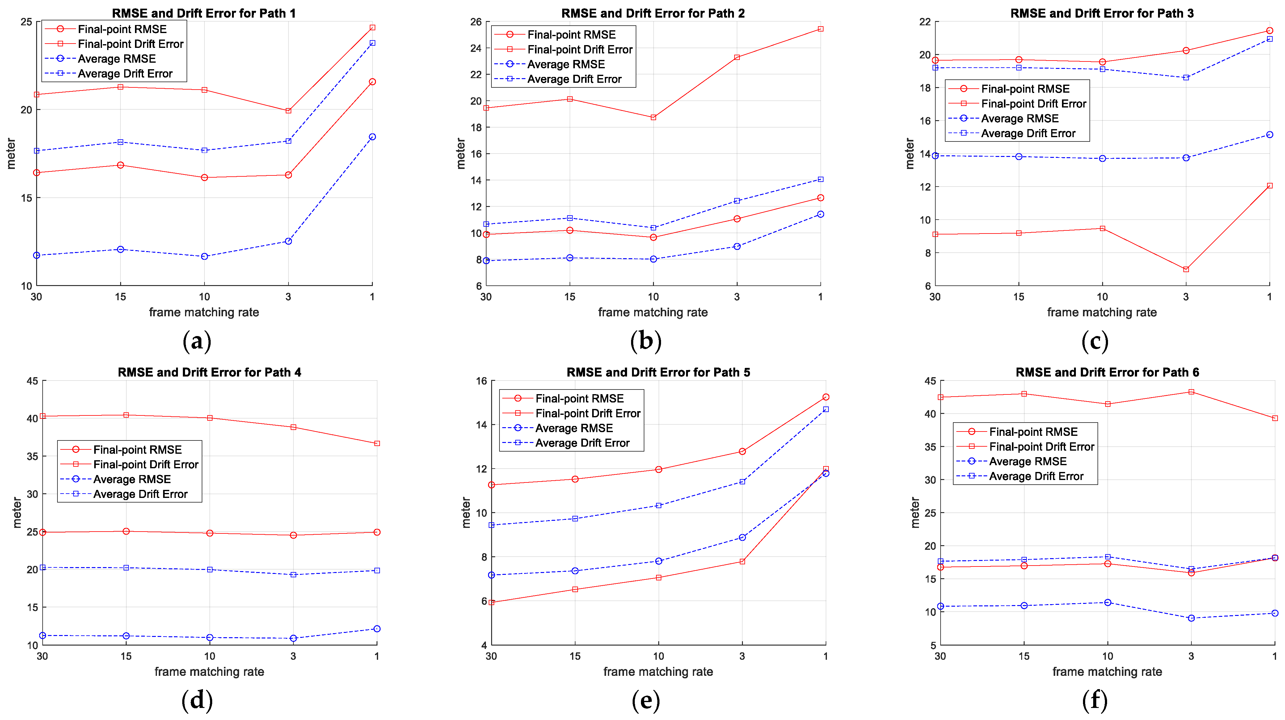 | RMSE (m) | Drift (m) | RMSE (m) | Drift (m) | RMSE (m) | Drift (m) | RMSE (m) | Drift (m) | RMSE (m) | Drift (m) | RMSE (m) | Drift (m) | |