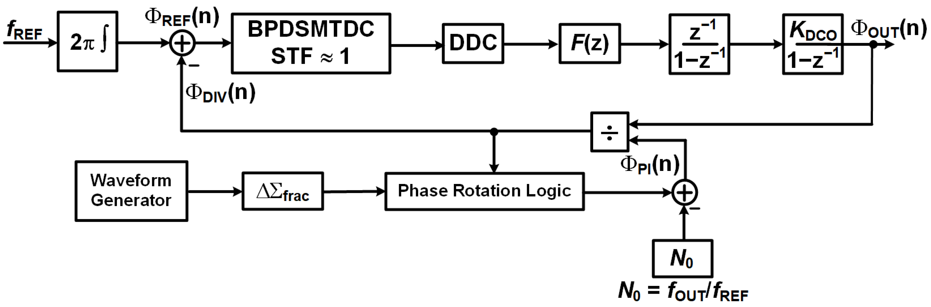 16]. By actively suppressing quantization noise within the frequency region where the PLL is most sensitive, bandpass delta-sigma architectures provide an opportunity to simultaneously support wide loop bandwidths and low in-band phase noise without resorting to excessively fine TDC resolution or aggressive calibration [