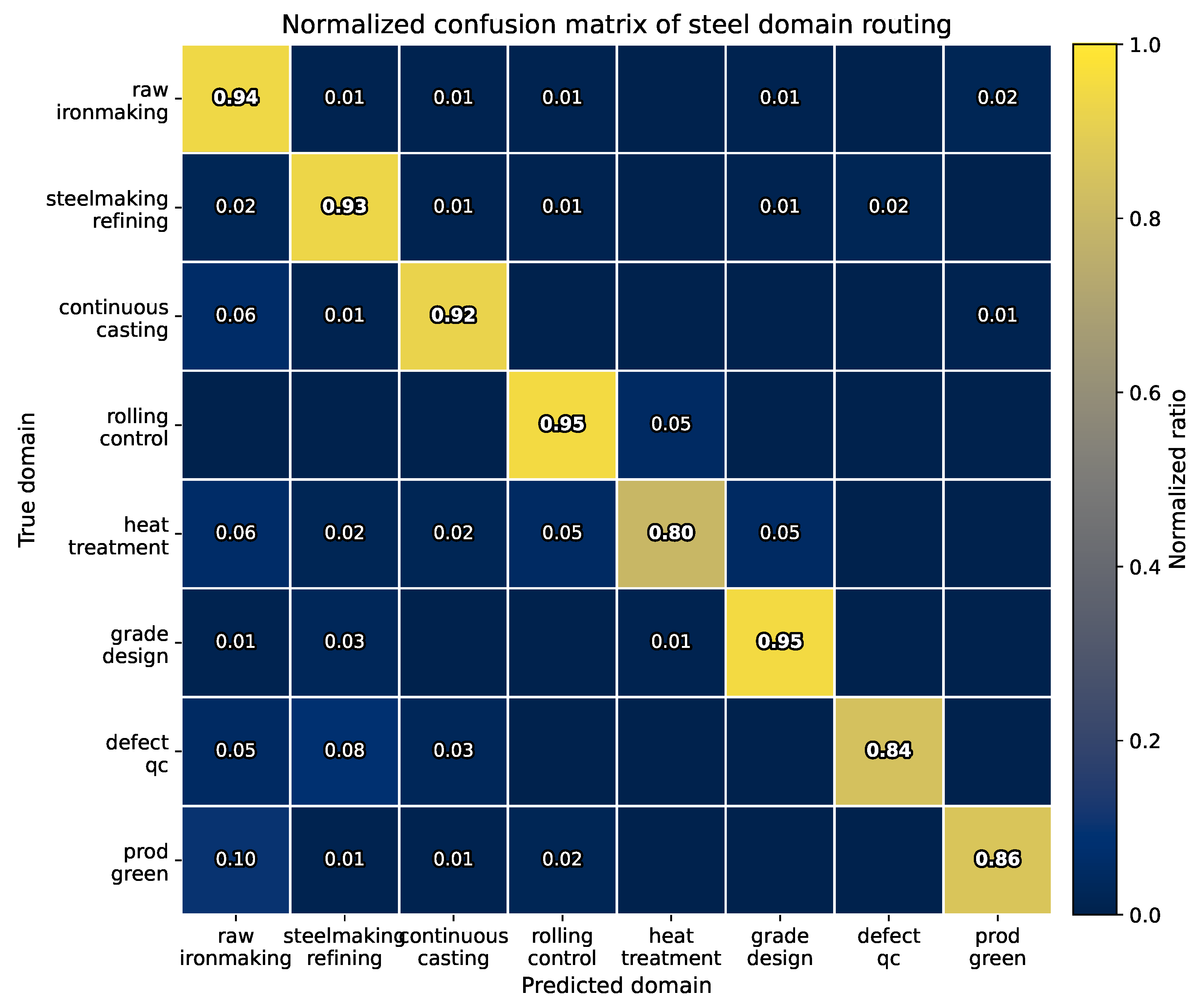 | Fine-grained domain routing | 8 steel domains | – | – | 0.899 | 0.921 |