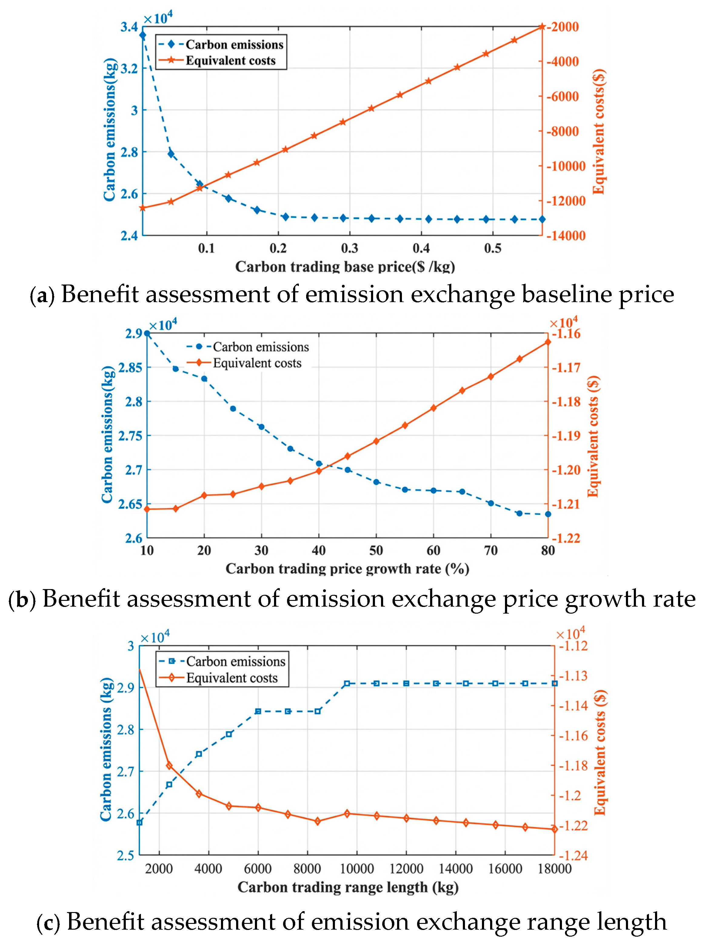 - A hybrid GA-CPLEX optimization framework is designed and validated to balance computational efficiency and solution quality. By strategically partitioning the global pricing search from deterministic linear programming, the framework effectively avoids local optima and handles the non-smooth “kinks” of carbon signals with a 99% success rate. Sensitivity analysis confirms the model’s resilience, maintaining stable equilibrium points.