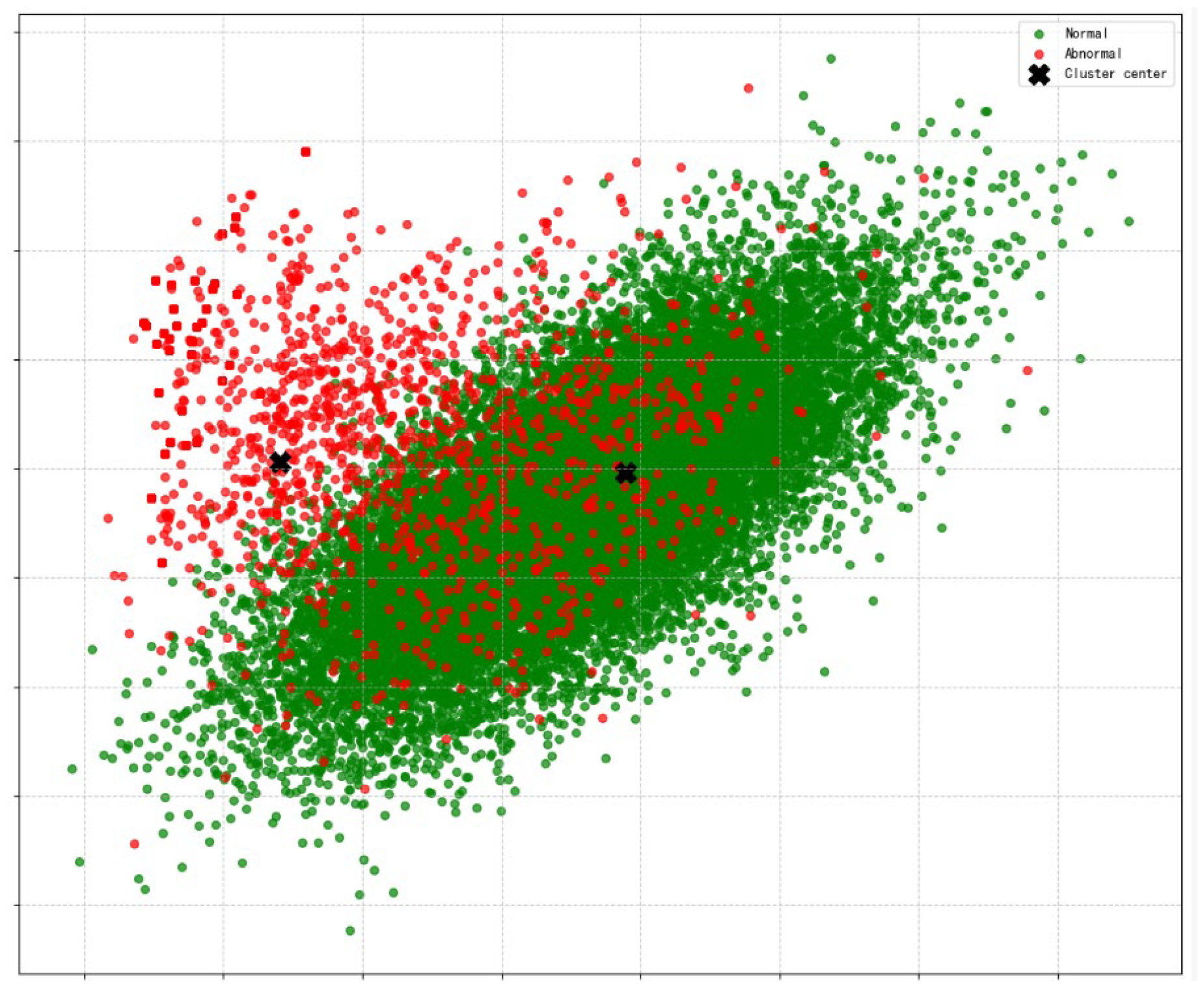Figure 9, some abnormal data were classified into the normal cluster because they were closer to the normal cluster center, resulting lead to unsatisfactory data classification results.